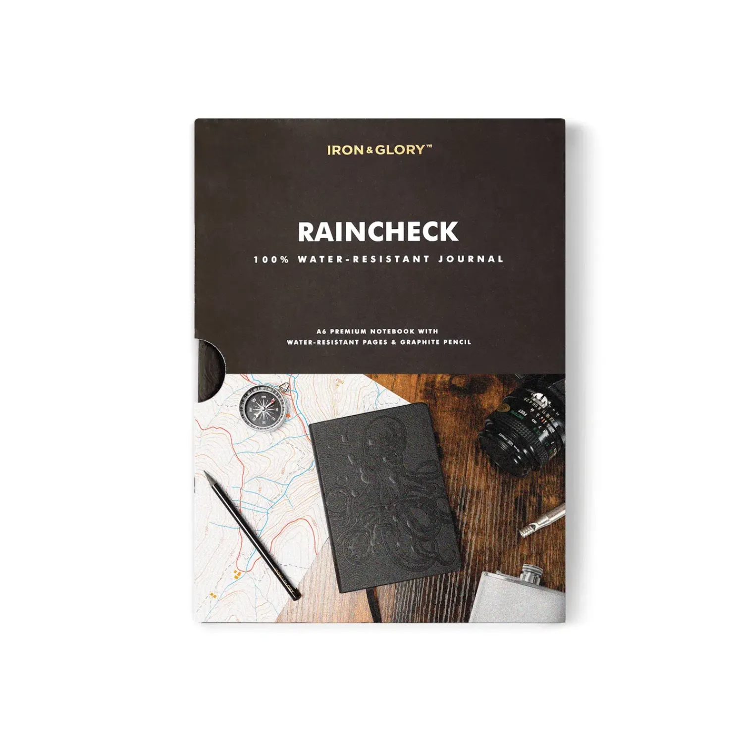 Sta je net heerlijk te genieten onder een warme douche, komt er ineens een lyric in je op die je echt moet noteren voor je nieuwe song. Of als je in de kroeg zit voor een bespreking en je gooit per ongeluk een glas bier over je notitieboekje. Met het Raincheck waterproof notitieboek van Iron & Glory is dat allemaal geen probleem. In dit speciale waterbestendige notitieboek met waterbestendig steenpapier en het speciale grafietpotlood schrijf jij gewoon onder de douche of in de stromende regen. Het boekje bevat 80 pagina’s en heeft een stoere opdruk van een octopus op de zwarte kaft.