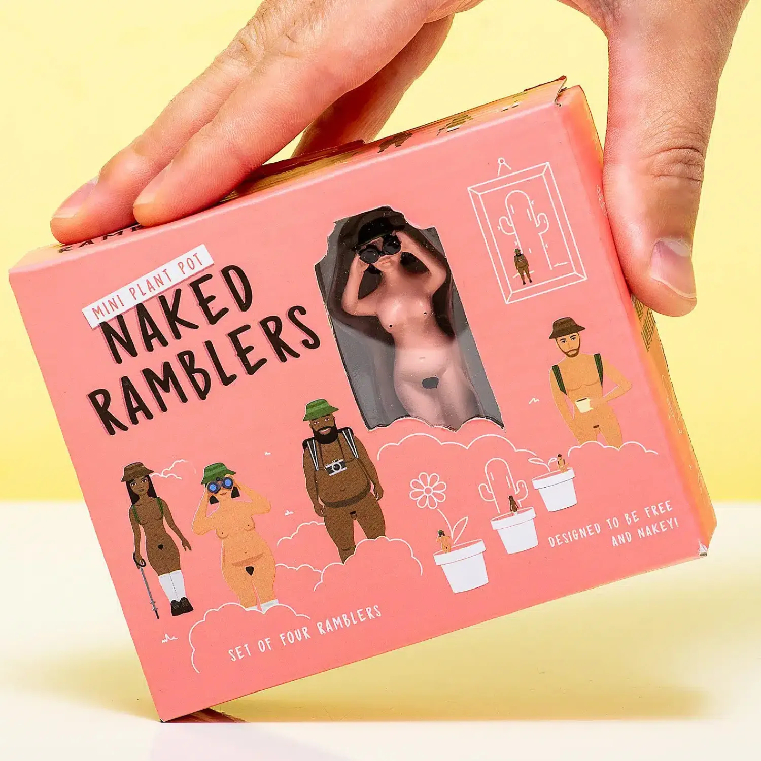 Wat staat daar nou achter je pannenkoekenplant? Het is één van de Bloempot naturisten (set van 4) van Gift Republic! Deze grappige minifiguurtjes zien eruit als naturisten. Ze zijn helemaal bloot, op een stel verstandige schoenen, hoed en verrekijker na. De set heeft vier verschillende figuurtjes: je prikt ze eenvoudig in je bloempotten om deze op te vrolijken.