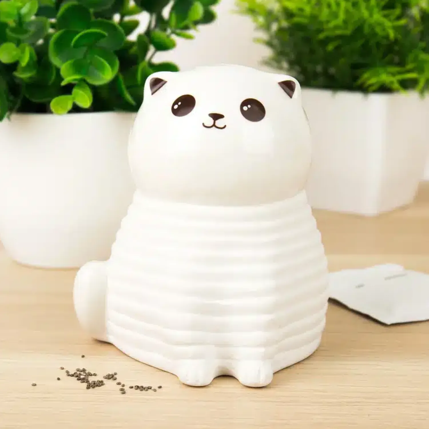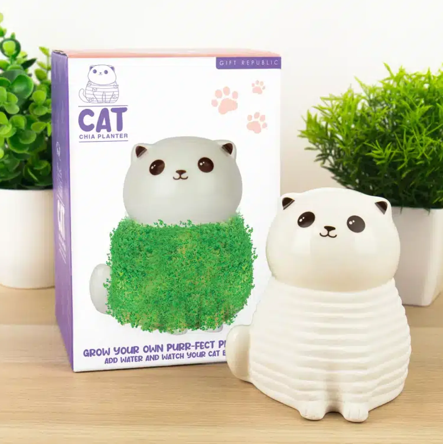 Geef de kat groen haar, met de Kat bloempot met zaadjes van Gift Republic. Dit is een origineel kweeksetje waarbij je een groen kattenkopje kunt laten groeien. Plant de zaadjes, geef water, en kijk hoe je kat langzaam een groene vacht krijgt. Perfect cadeau voor kattenliefhebbers, kinderen of iedereen die van plantjes houdt maar geen groene vingers heeft. Want zelfs als je elke plant dood krijgt, lukt dit wel! Staat leuk op je vensterbank, bureau of in de keuken.