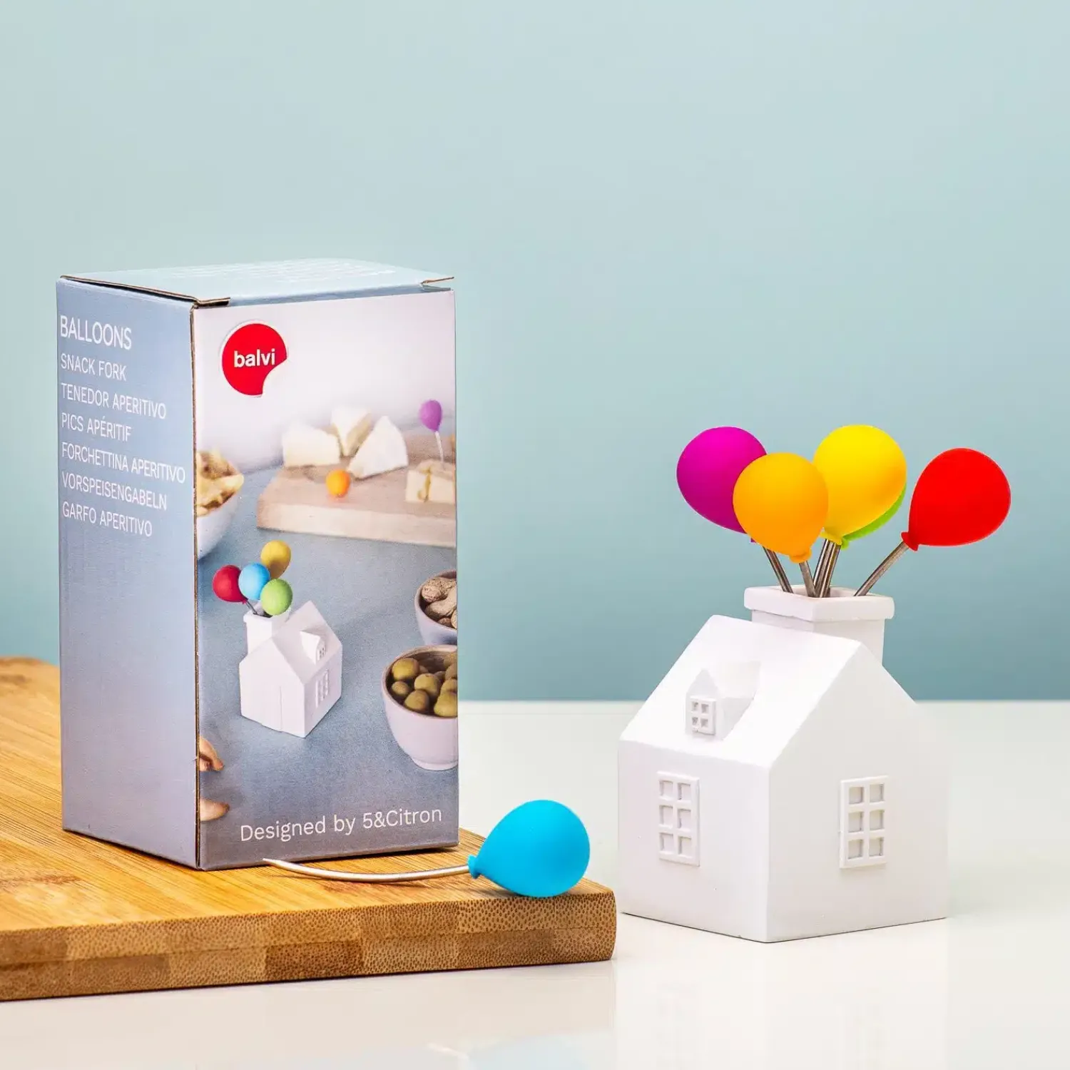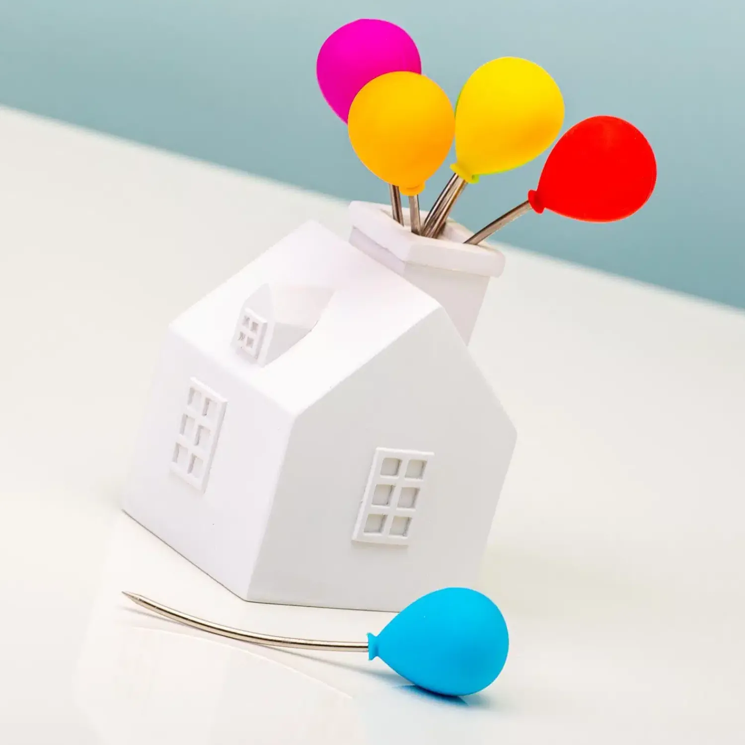 Is Up jouw lievelingsfilm? Dan vier je je feestjes vast graag in stijl. Dat kan, met de Up cocktailprikkers met huisje van Balvi. Dit huisje, met zijn gekleurde ballonnen, is natuurlijk geïnspireerd op de bekende film. Onder de ballon zit een rvs prikker, die je kunt gebruiken voor blokjes kaas, tomaat of bitterballen. In totaal krijg je zes satéprikkers, die je na gebruik weer af kunt wassen en in de schoorsteen kunt zetten.