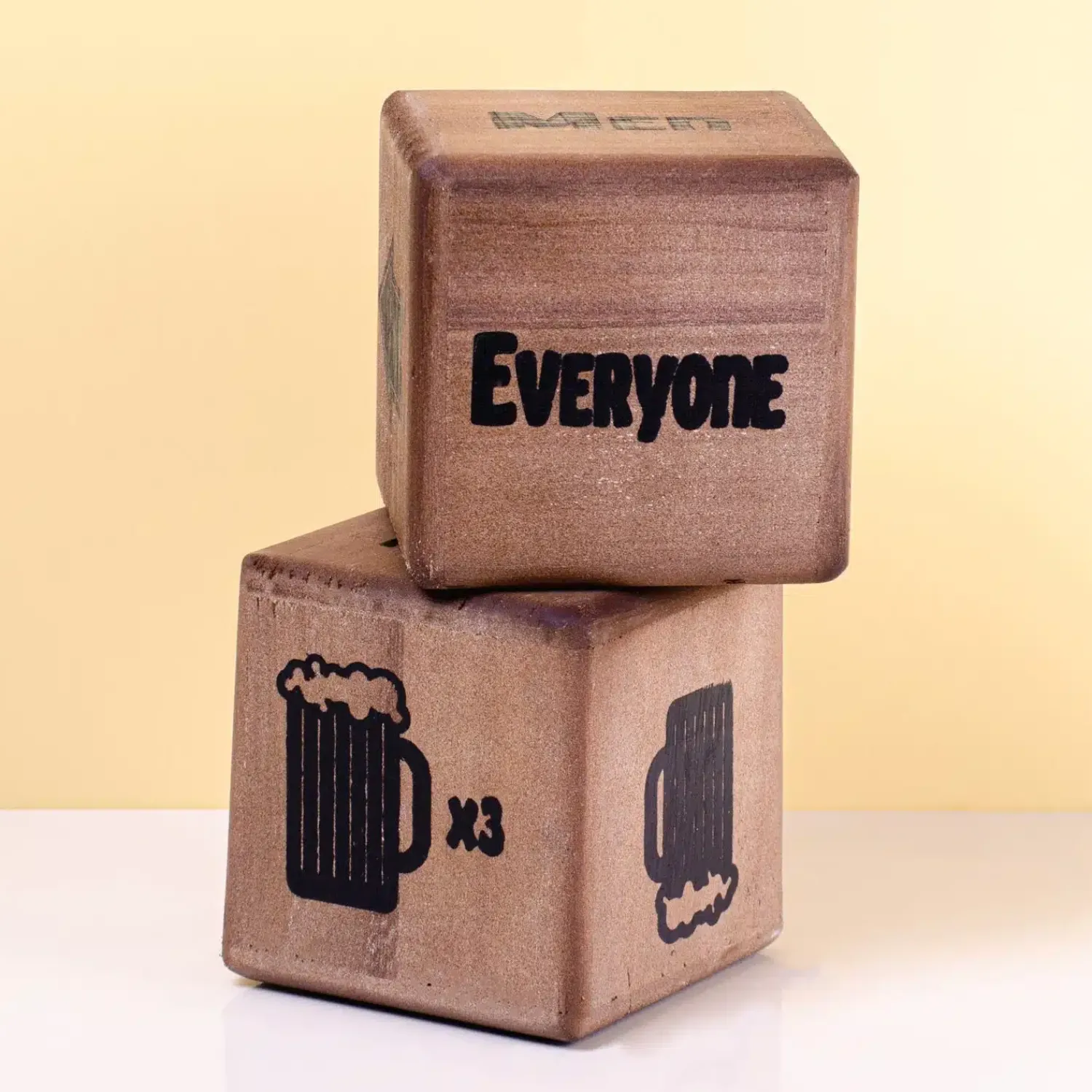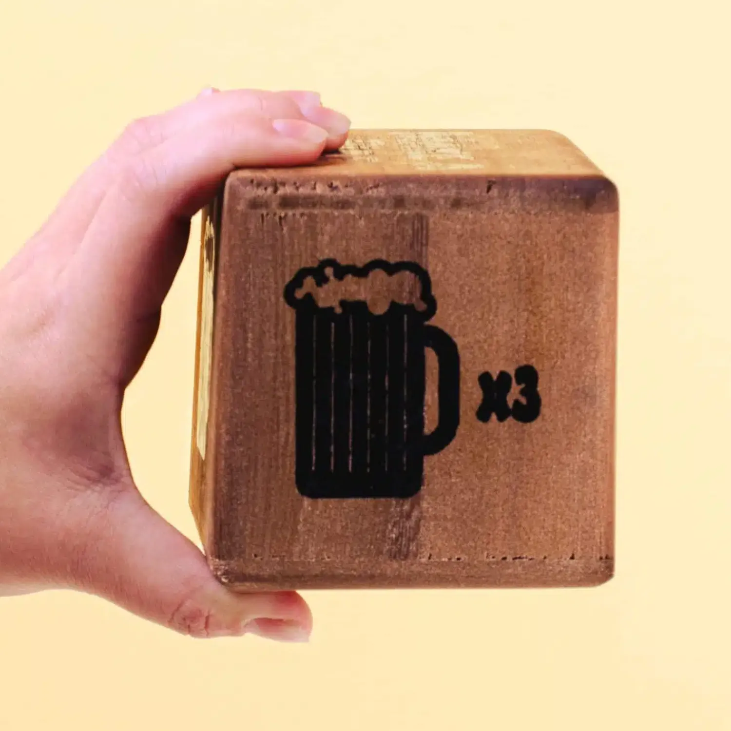 - Houten dobbelstenen waarmee je een drankspel speelt