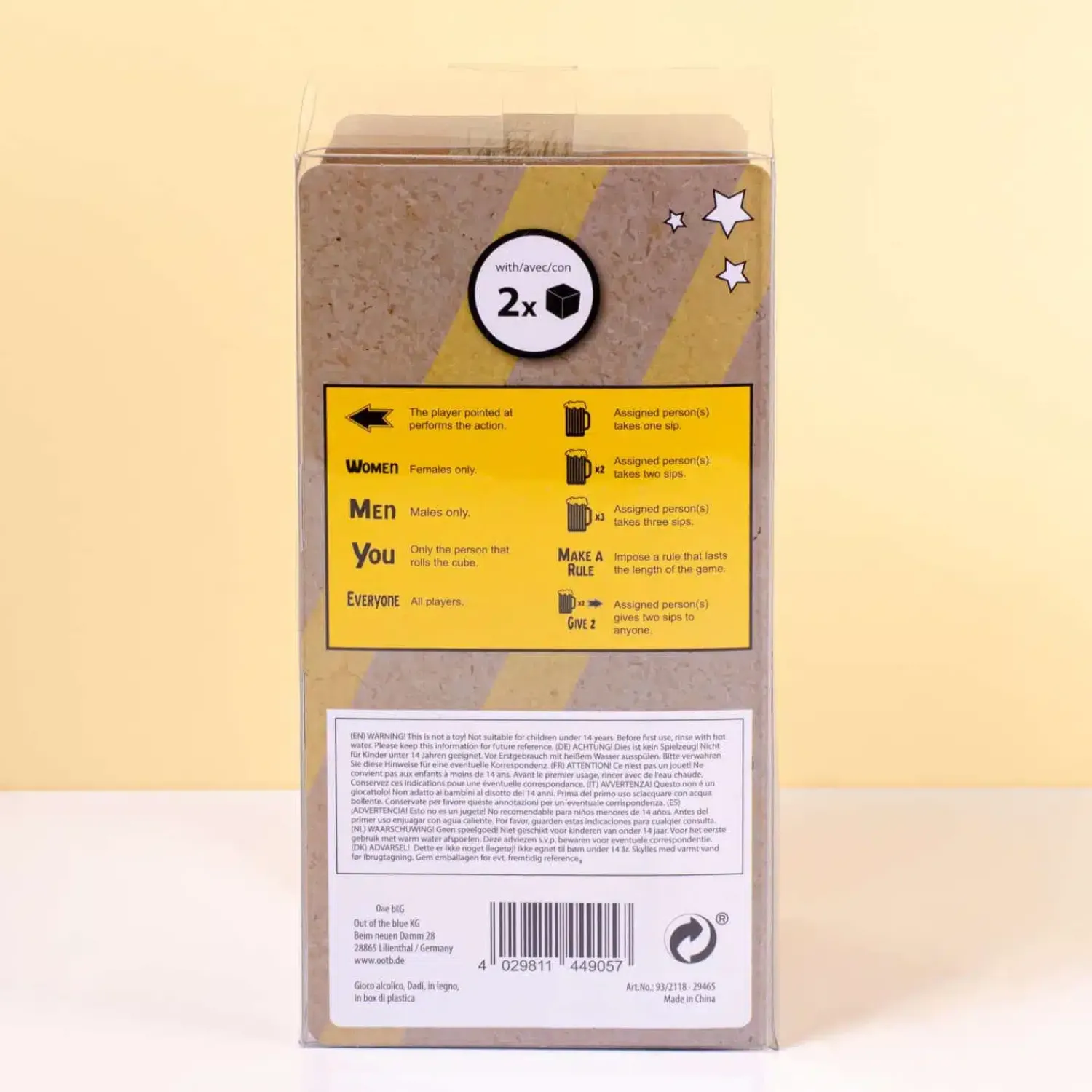 Speel je graag een drankspelletje met vrienden? Dan hebben wij iets leuks voor je: het Dobbelstenen drankspel van Out of the Blue. De naam zegt het al: een drankspel met dobbelstenen. Grote houten dobbelstenen in dit geval. Op de ene dobbelsteen staat wie er moet drinken (zoals alle vrouwen, iedereen of een specifiek iemand) en op de andere staat er hoeveel er gedronken moet worden.