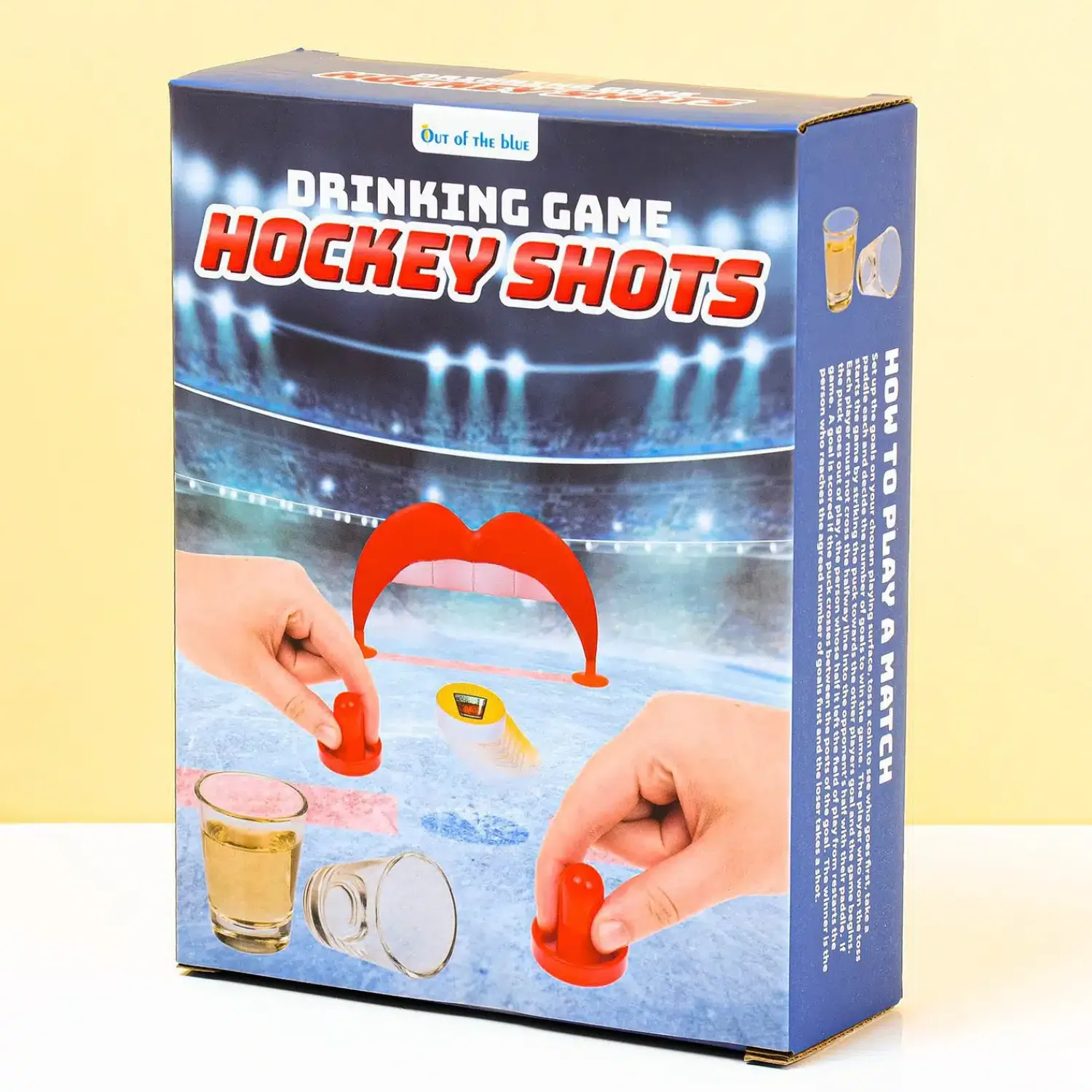 Een avondje hockeyen met het comfort van thuis? Een eitje, met het Hockey shots drankspel van Out of the Blue! Dit grappige drankspel speel je gewoon op de eettafel of je keukeneiland. Het spelletje komt met twee goals in de vorm van een mond, die je vastmaakt met de zuignappen. Met de putter in je hand probeer je een puck door de goal te schuiven. Op de ene puck staat een glas bier, op de ander een glas sterke drank. Zo wordt er bepaald wie wat moet drinken. Natuurlijk krijg je ook twee shotglaasjes bij het spel.