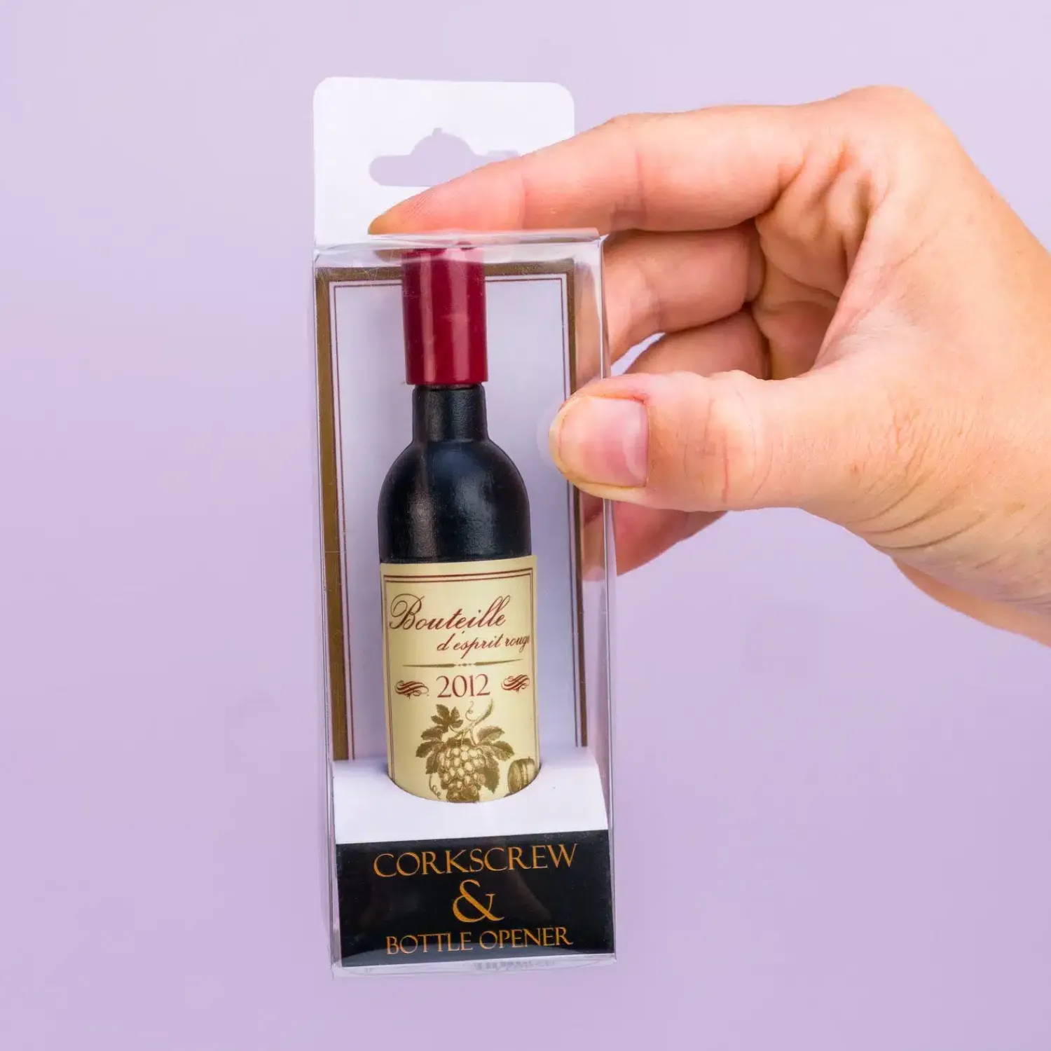 Een fles wijn om je wijnfles mee te openen? Dat is de Wijnfles kurkentrekker van Out of the Blue! Een grappige kurkentrekker die lijkt op een flesje wijn. De kurkentrekker is ook voorzien van een flesopener, want je kunt het je bijna niet voorstellen, maar er zijn mensen die liever een biertje drinken. Deze leuke kurkentrekker is het perfecte cadeautje voor wijndrinkers.