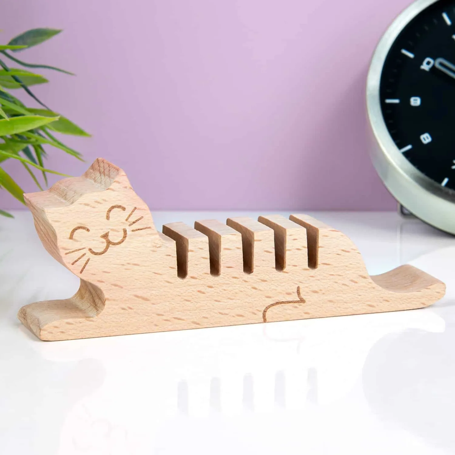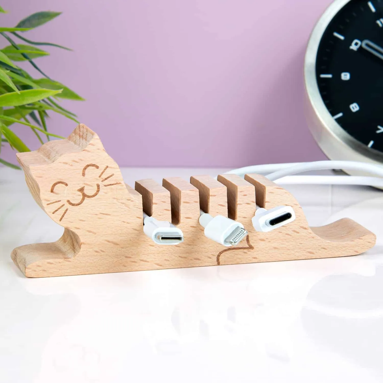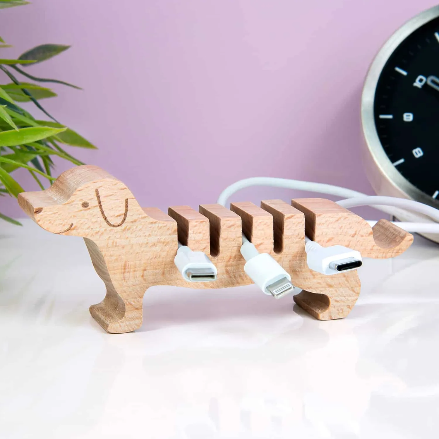 Met de Huisdier kabel organiser van Kikkerland heb je nooit meer een rommeltje op je bureau: je oplaadkabels blijven namelijk netjes georganiseerd op één plek zitten. Deze originele houten kabelhouder is speciaal voor dunne kabels, zoals die van je telefoon. Zo hoef je nooit meer te zoeken naar het juiste kabeltje en heb je bovendien een glimlachend huisdier op je bureau staan. Wie wordt daar nou niet vrolijk van?