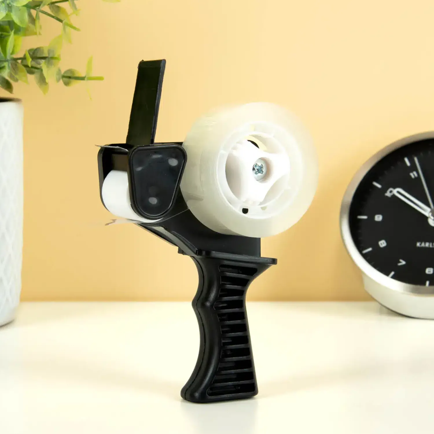 Als je weleens in een magazijn hebt gewerkt, dan herken je hem ongetwijfeld: de tapedispenser. Deze handige plakbandhouder zorgt ervoor dat je eenvoudig dozen en pakketjes dicht kunt plakken. De Mini tapedispenser is hierop geïnspireerd, maar deze is bedoeld voor gewone, kleine rolletjes plakband.