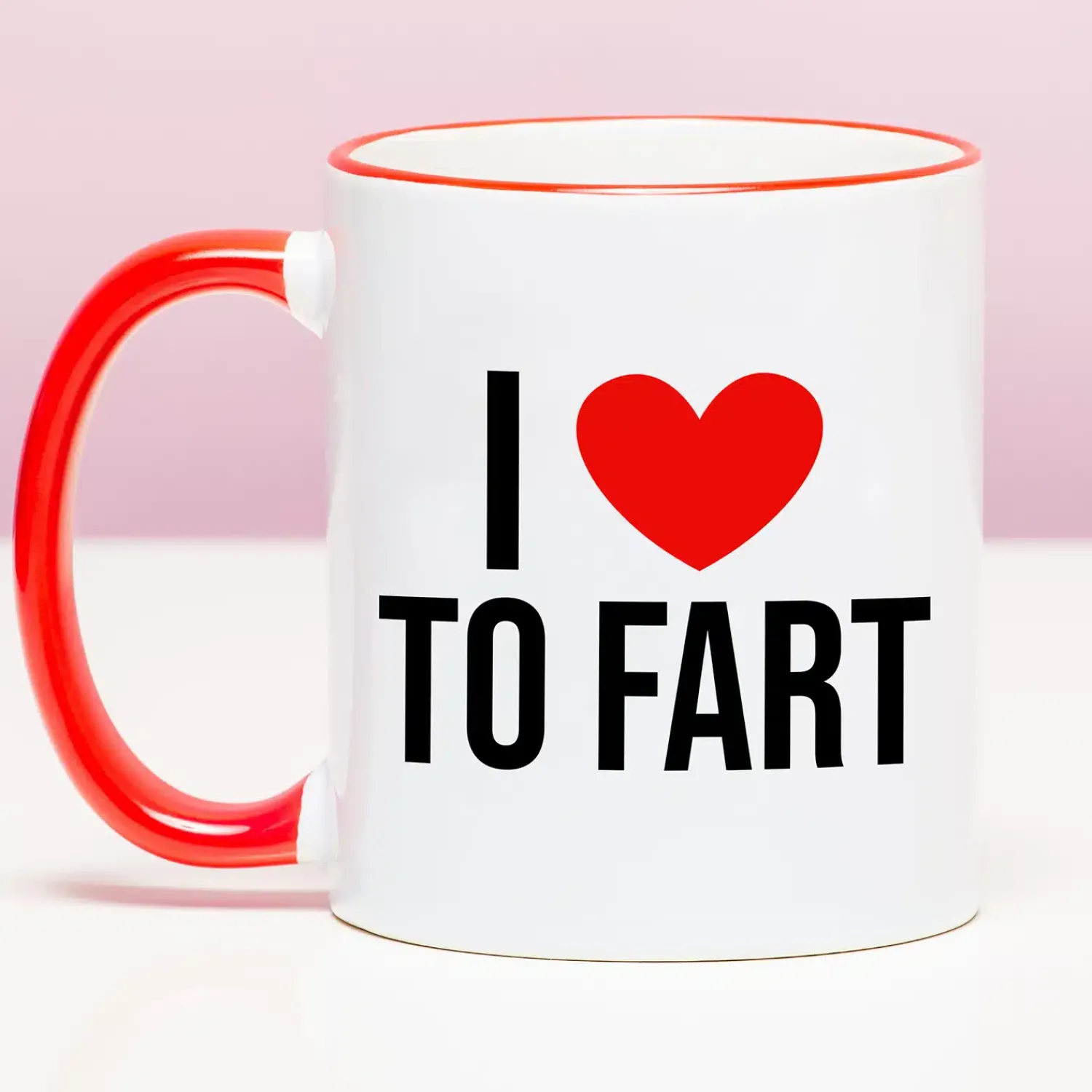 - Grappige mok met hart-illustratie en de tekst: I Love To Fart