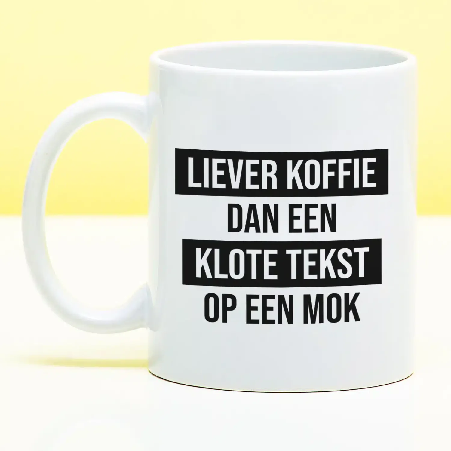 - Met tekst: Liever koffie dan een klote tekst op een mok
