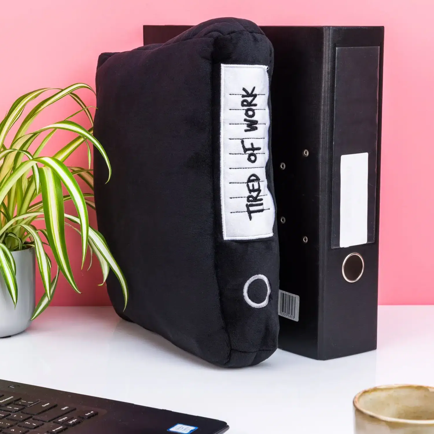 Af en toe heb je gewoon even behoefte aan een dutje. Ja, ook op het werk. Gelukkig heb jij het Multomap kussen van Out of the Blue tussen de andere ringbanden staan. Zo heeft niemand het in de gaten als je deze map, wat dus eigenlijk een kussen is, op je bureau legt en een korte powernap doet. Het kussen is heerlijk zacht. Op de zijkant staat namelijk de tekst: tired of work.