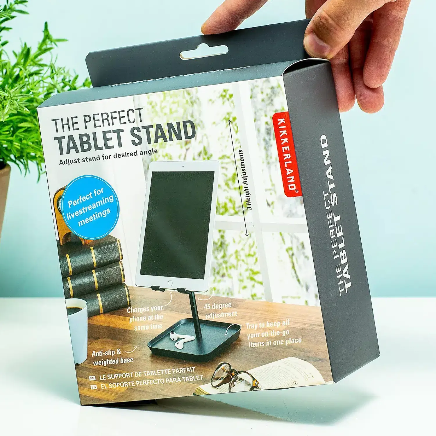 Videocalls of gewoon een filmpje kijken wordt veel makkelijker met de Verstelbare tablethouder van Kikkerland. Zeg je lamme armen maar gedag: vanaf nu zet jij je tablet in deze praktische houder. De Perfect Tablet Stand, zoals Kikkerland zelf zegt. Je kunt de houder in drie verschillende hoogtes zetten en hij is 45 graden naar voren verstelbaar. Zo heb je altijd perfect zicht. Ook handig: de houder heeft een opening aan de onderkant, zodat je je tablet gewoon kunt opladen. Daarnaast kun je je dagelijkse spullen, zoals je AirPods, oplader en sleutels kwijt in het bakje aan de onderkant.