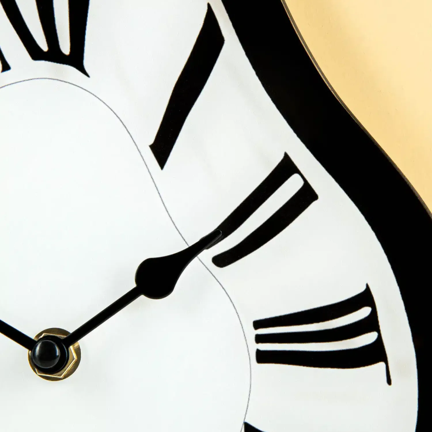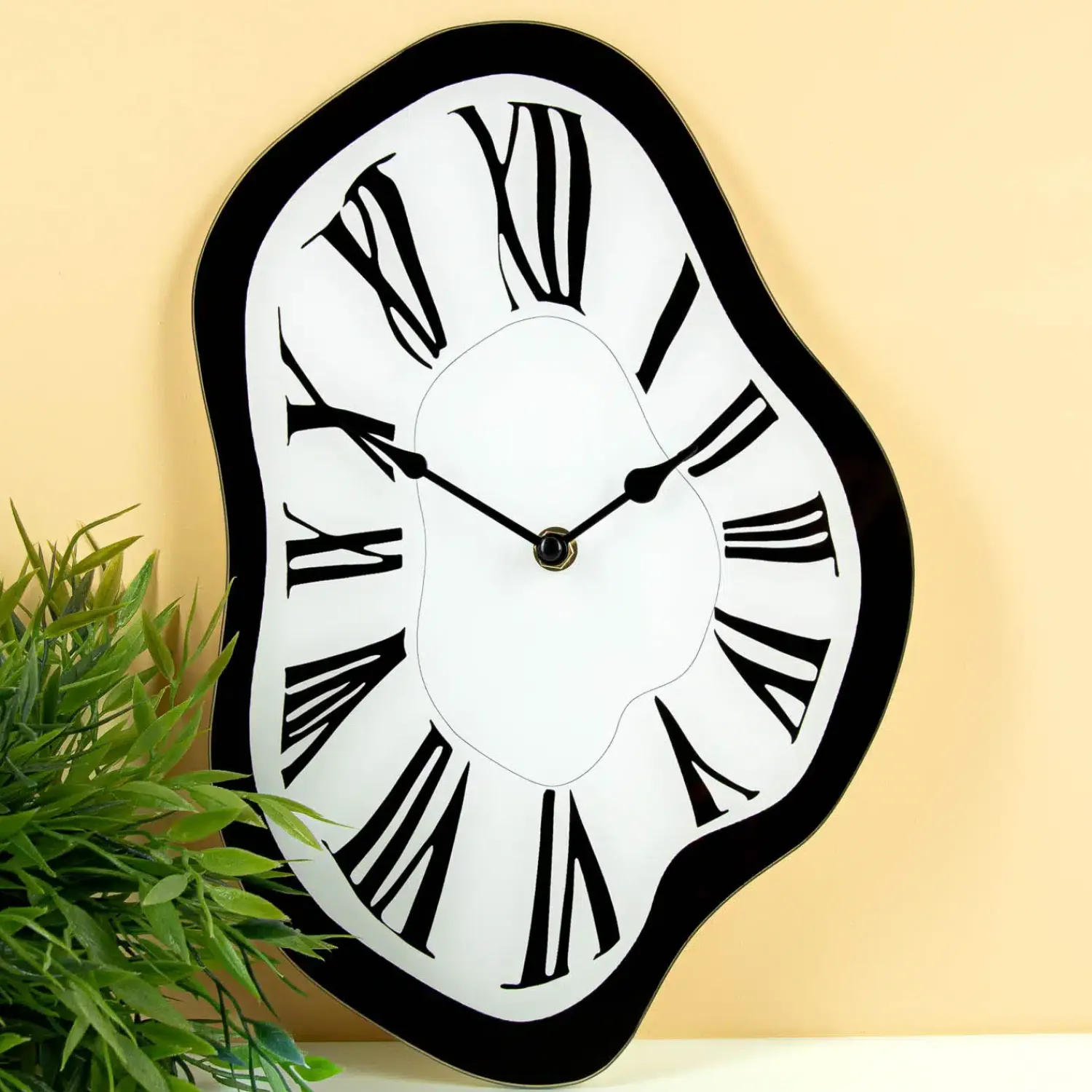 Heb jij soms het gevoel dat de tijd door je vingers glipt? Deze Smeltende wandklok snapt hoe je je voelt. De klok ziet er namelijk uit alsof hij aan het smelten is! De klok met Romeinse cijfers lijkt een heel gewone klok, maar wel eentje die iets te lang boven het haardvuur heeft gehangen en dus nu aan het smelten is. Maar wees gerust: hij geeft gewoon de juiste tijd aan.