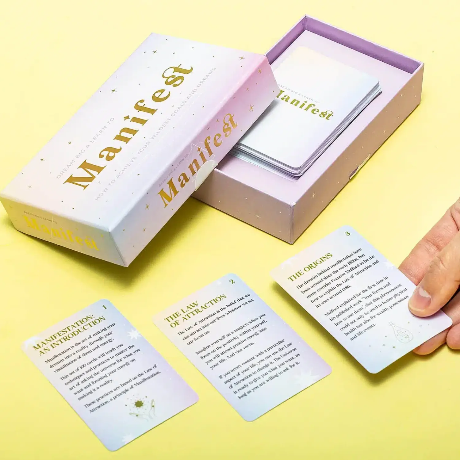 Geloof jij in de kracht van manifesteren, maar weet je niet precies hoe het werkt? De Manifest Lifestyle kaarten van Gift Republic helpen je hiermee. De honderd kaarten bevatten technieken en oefeningen waarmee jij het universum vraagt om je dromen waar te maken.