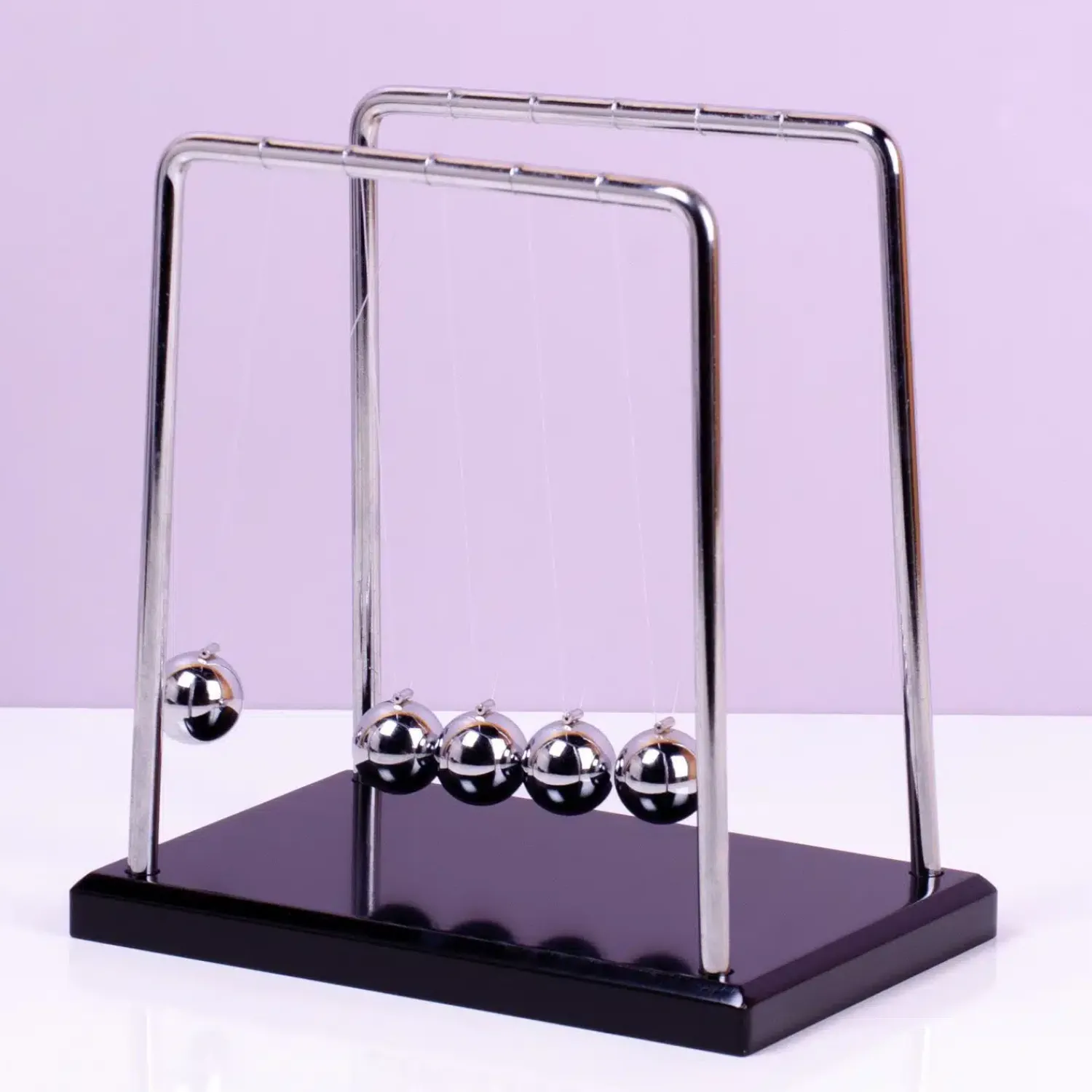 Wil je echt volwassen doen, dan zet je de Newtonpendel van MikaMax op je bureau. Deze pendel – of de Newton’s Cradle – demonstreert de derde wet van Isaac Newton. Je weet wel, de wetenschapper die de zwaartekracht beschreef. De Newtonpendel laat zien hoe energie door de balletjes kan verplaatsen: als je het linker balletje tegen dat ernaast laat vallen, dan bewegen de drie in het midden niet. Pas het rechter balletje zal weer bewegen. Dit gaat door tot de balletjes door wrijving van de lucht steeds minder bewegen.
