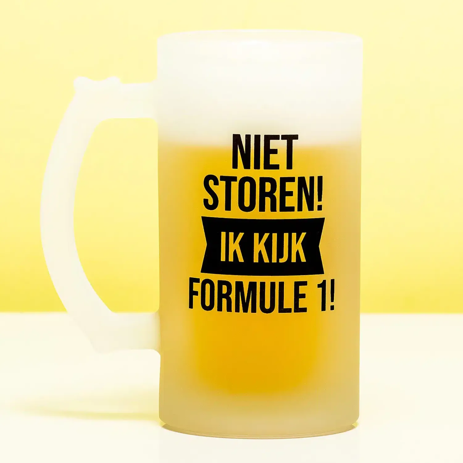 Zit je net lekker in de race, wil je gezin opeens van alles van je. Ze zouden beter moeten weten: tijdens Formule 1 weekenden wil jij niet gestoord worden! Met de Bierpul Niet storen Formule 1 wordt dit wel duidelijk. Op de bierpul staat de tekst: Niet storen! Ik kijk Formule 1! Een grappige bierpul om cadeau te geven aan Formule 1 fans.