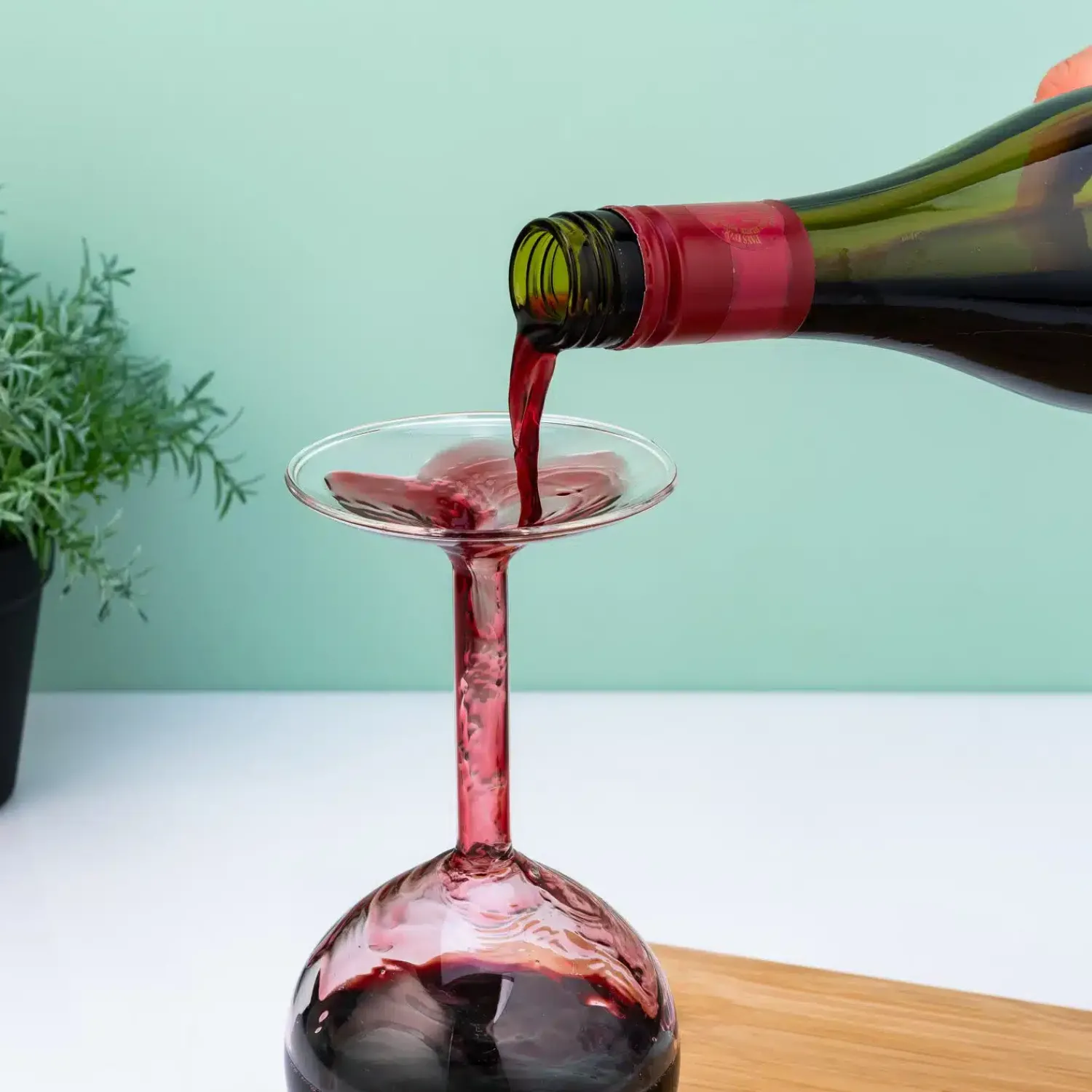 - Wijnglas dat op de kop lijkt te staan
