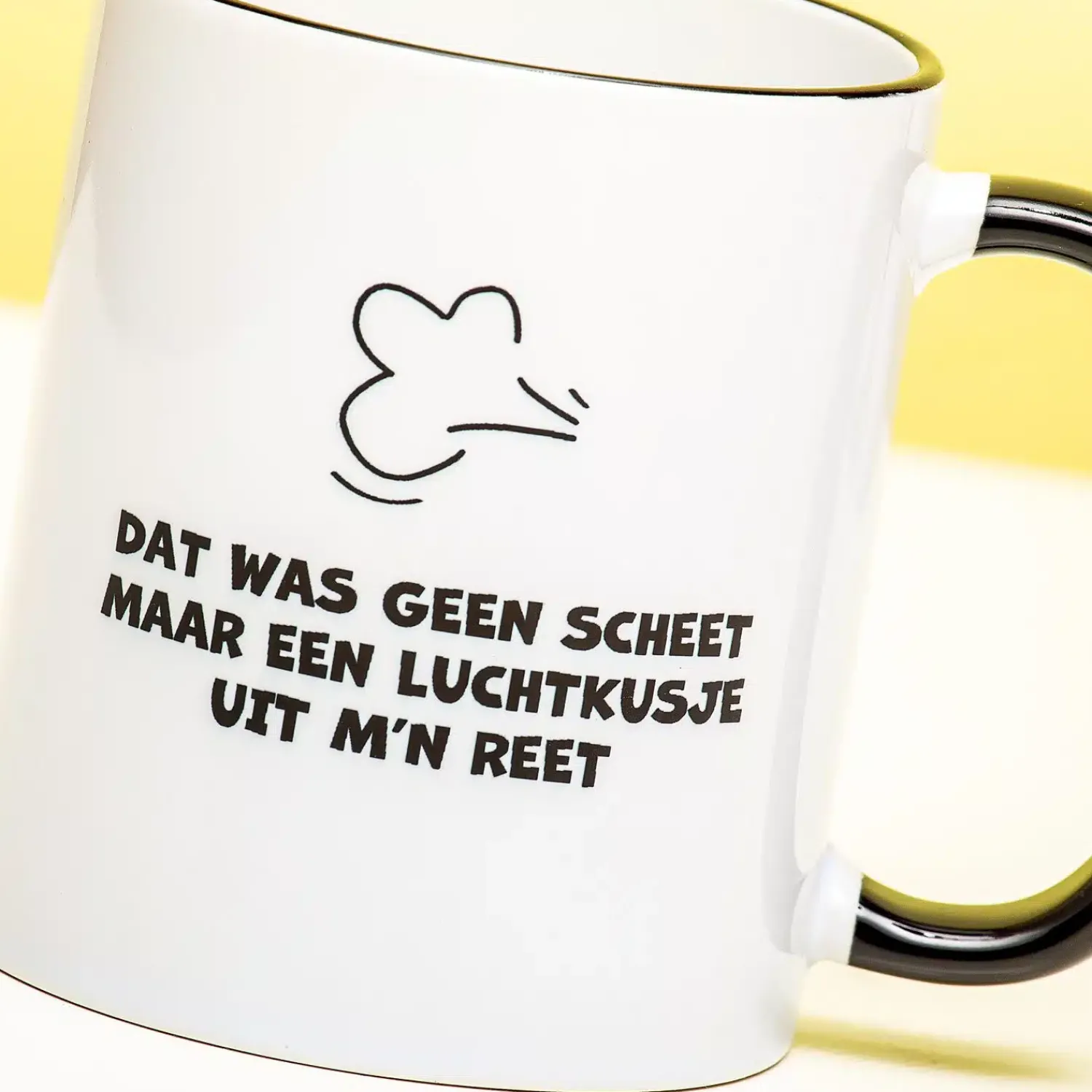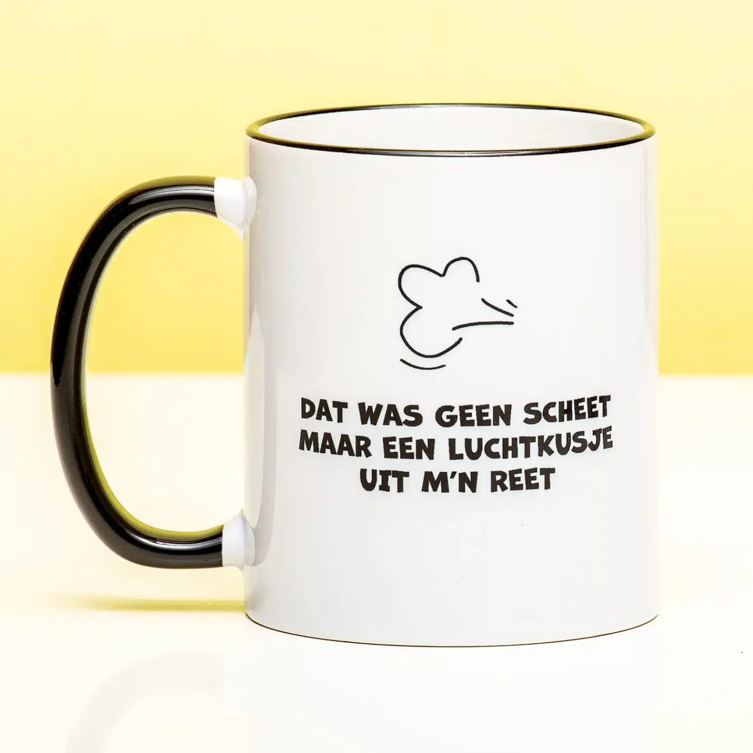 We hebben er allemaal wel mee te maken: zo’n huisgenoot of collega die om de haverklap zeurt over de scheten die je laat. Maar het is allemaal niet zo dramatisch, toch? Jouw scheten ruiken heerlijk en ze zouden zich juist vereerd moeten voelen. Dat blijkt wel, als je de tekst op de Dat was geen scheet mok leest. Daar staat namelijk op: Dat was geen scheet, maar een luchtkusje uit m’n reet.