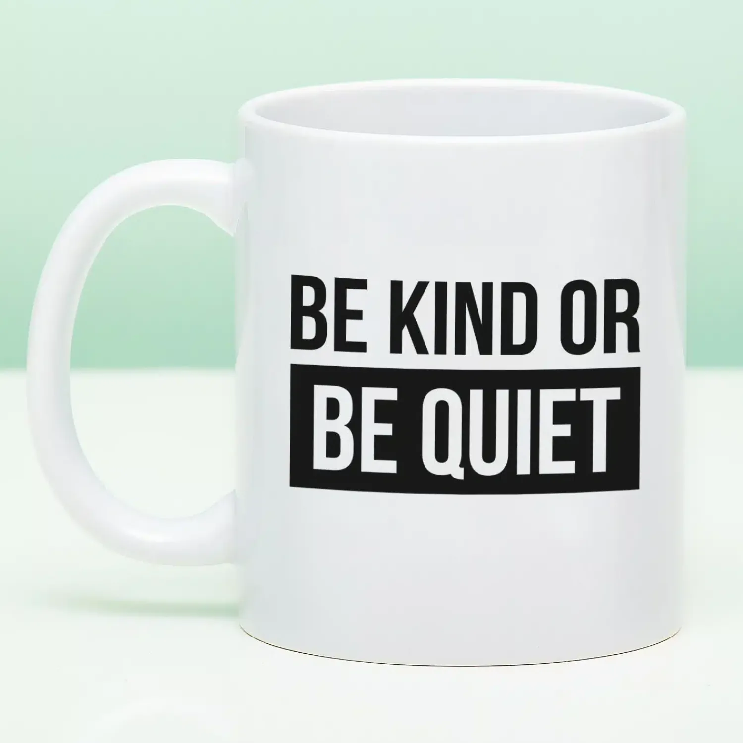 - Koffiemok met de tekst: Be kind or be quiet