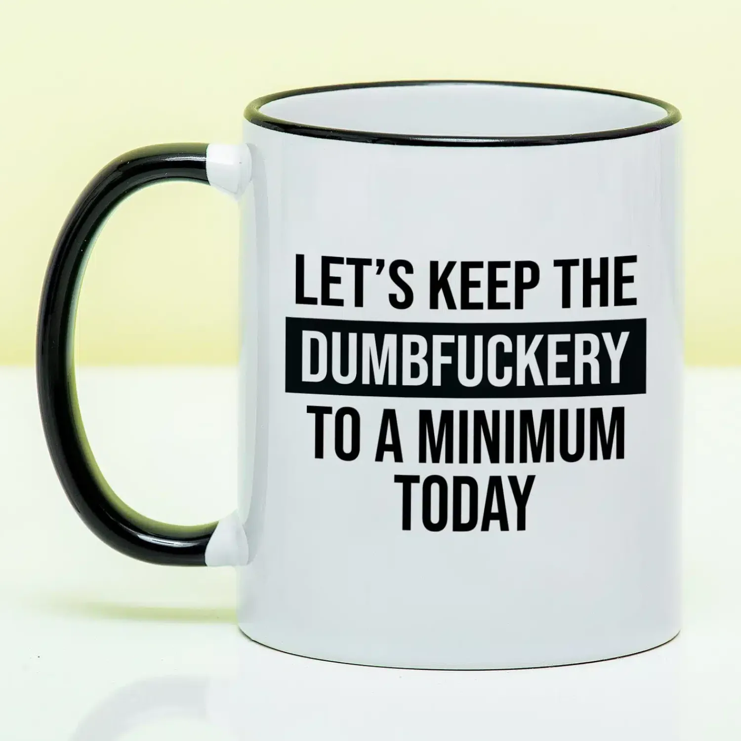 Zoek je een mok voor op het werk, waar je direct je collega’s mee aanspoort om hun werk fatsoenlijk te doen? Gebruik de Mok Dumbfuckery. Op deze koffiebeker staat de tekst: Let’s keep the dumbfuckery to a minimum today. Als je deze meeneemt in een vergadering, laat je duidelijk zien wat de bedoeling is zonder dat je het hoeft te zeggen.