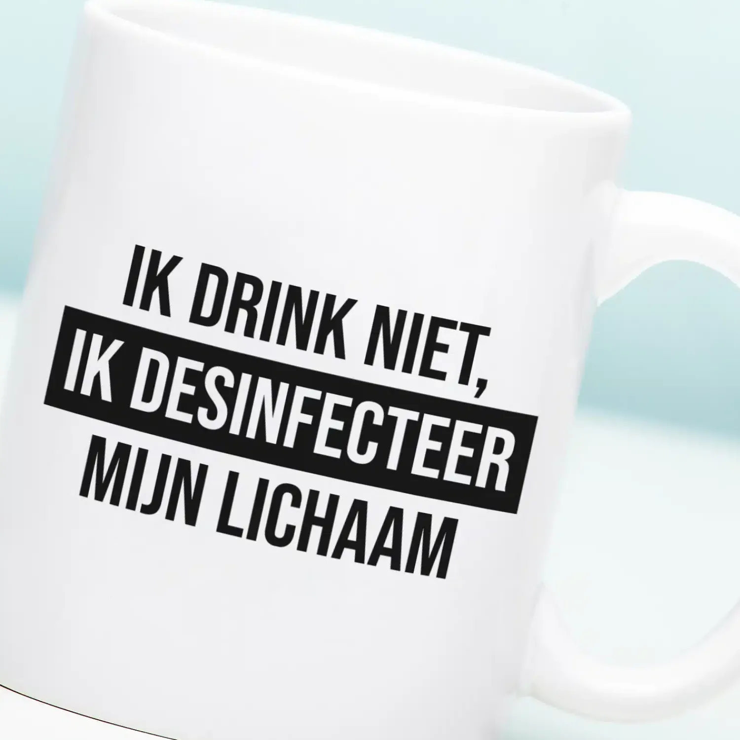 Ik drink niet, ik desinfecteer mijn lichaam beker