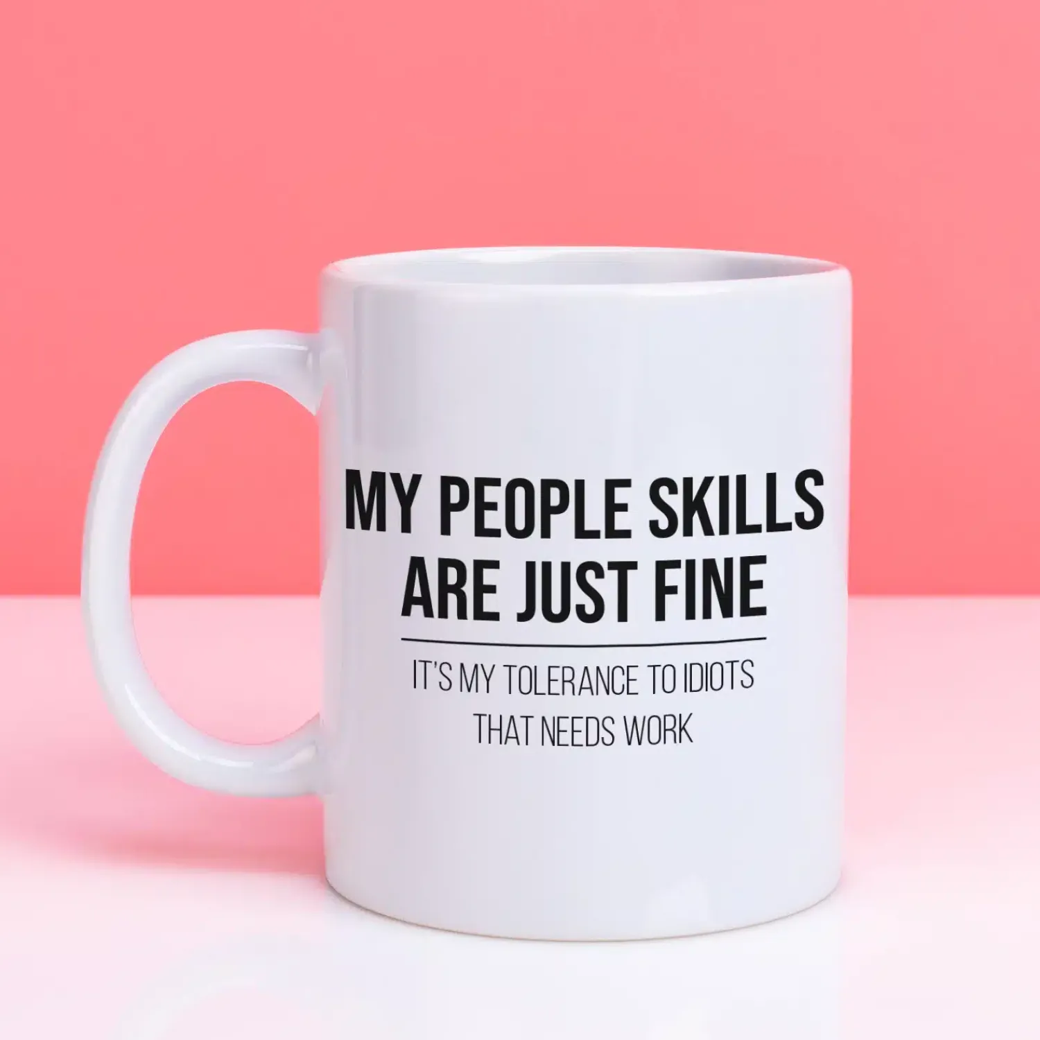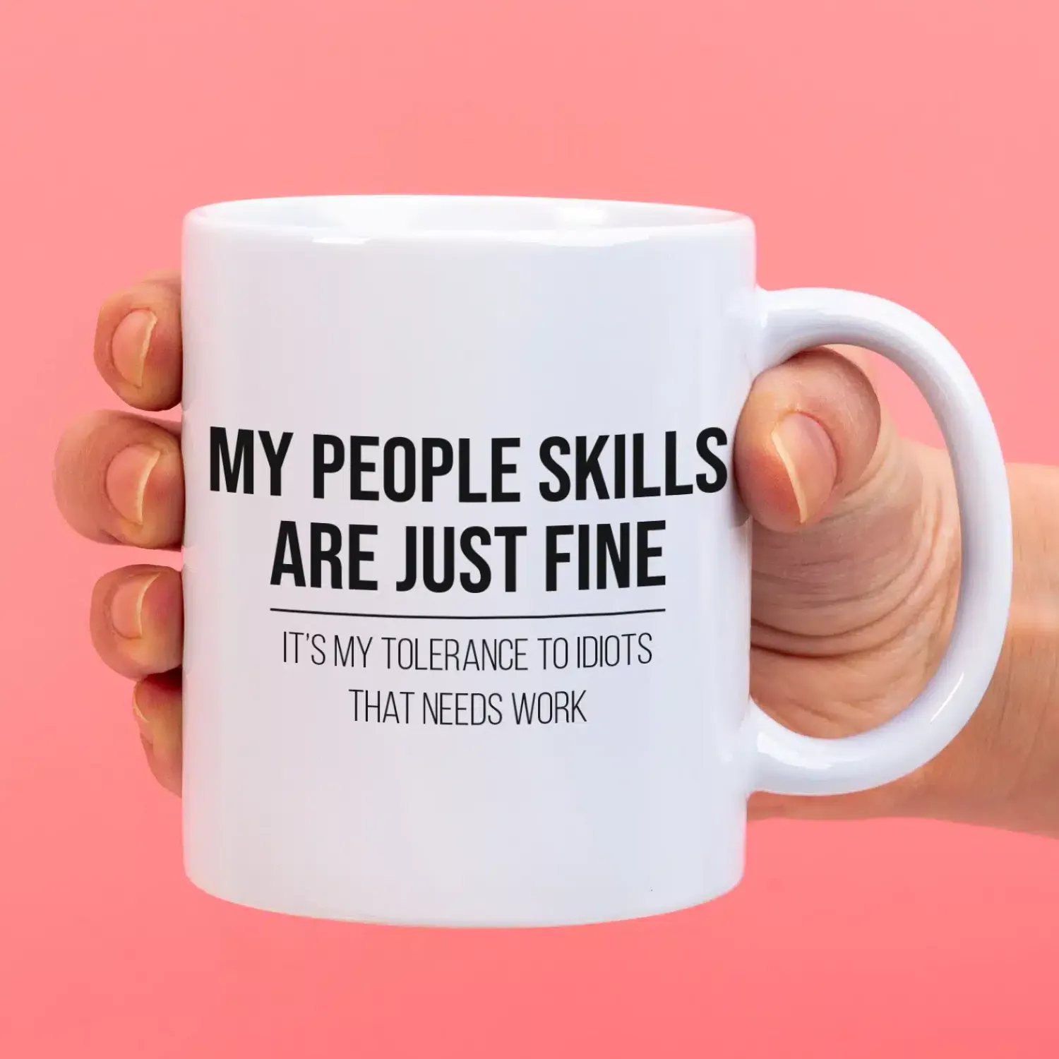 De Mok My People Skills Are Just Fine is gemaakt voor iedereen die prima met mensen omgaat, zolang er maar geen idioten in de buurt zijn. Een grappige koffiemok met een flinke dosis sarcasme, perfect voor op kantoor of thuis.