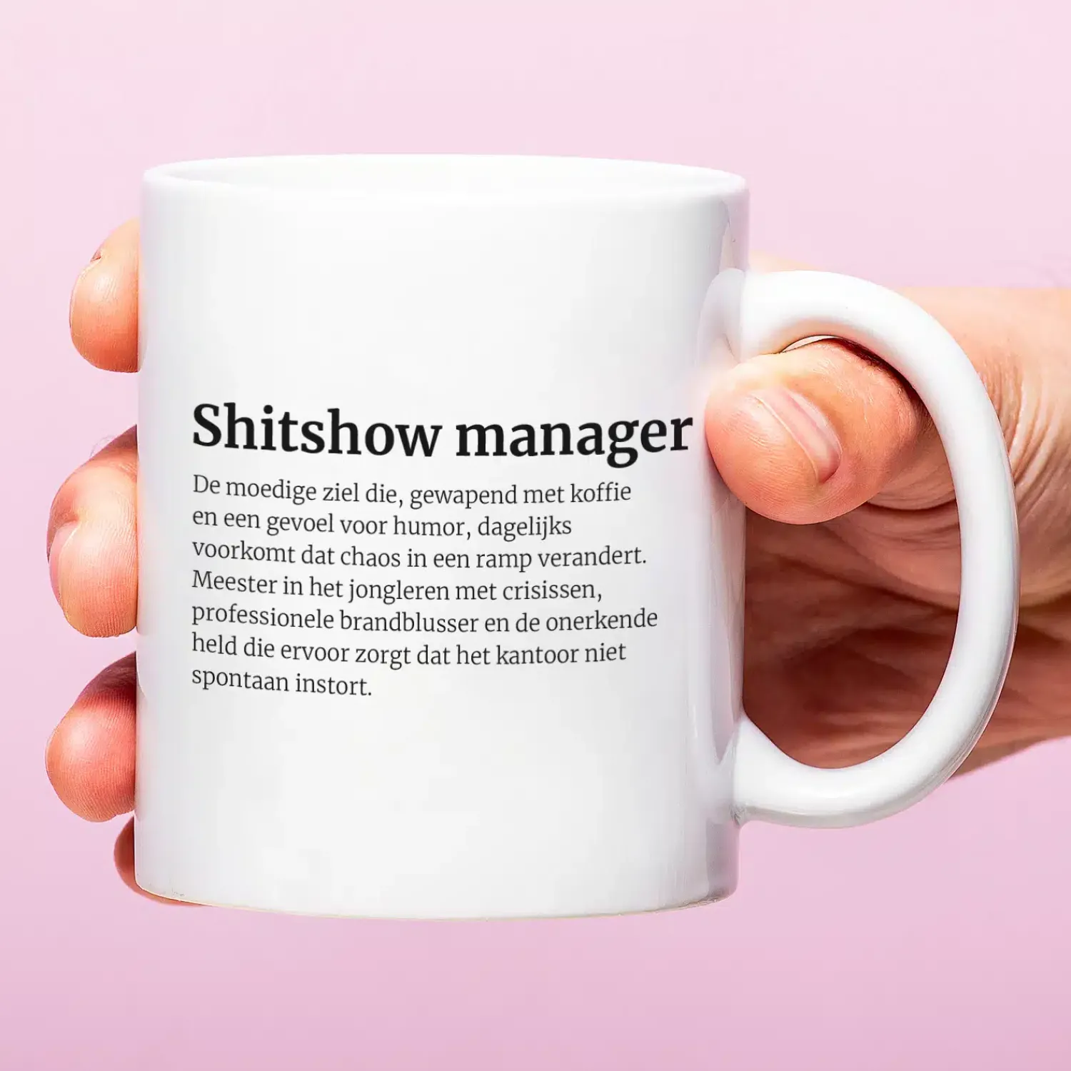 De Mok Shitshow manager is dé koffiebeker voor de held van kantoor. De manager die elke dag brandjes blust, crises in goede banen leidt en er toch nog een grapje tussendoor weet te maken. Een grappige mok voor iedereen die het onmogelijke mogelijk maakt.