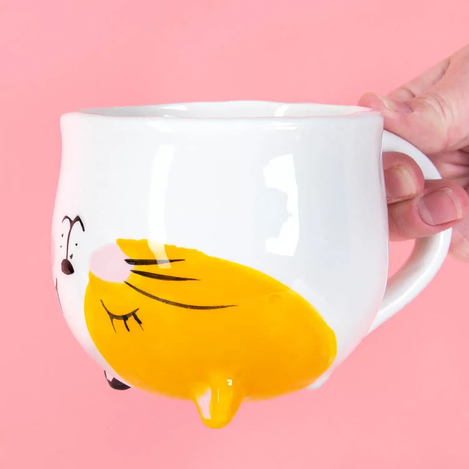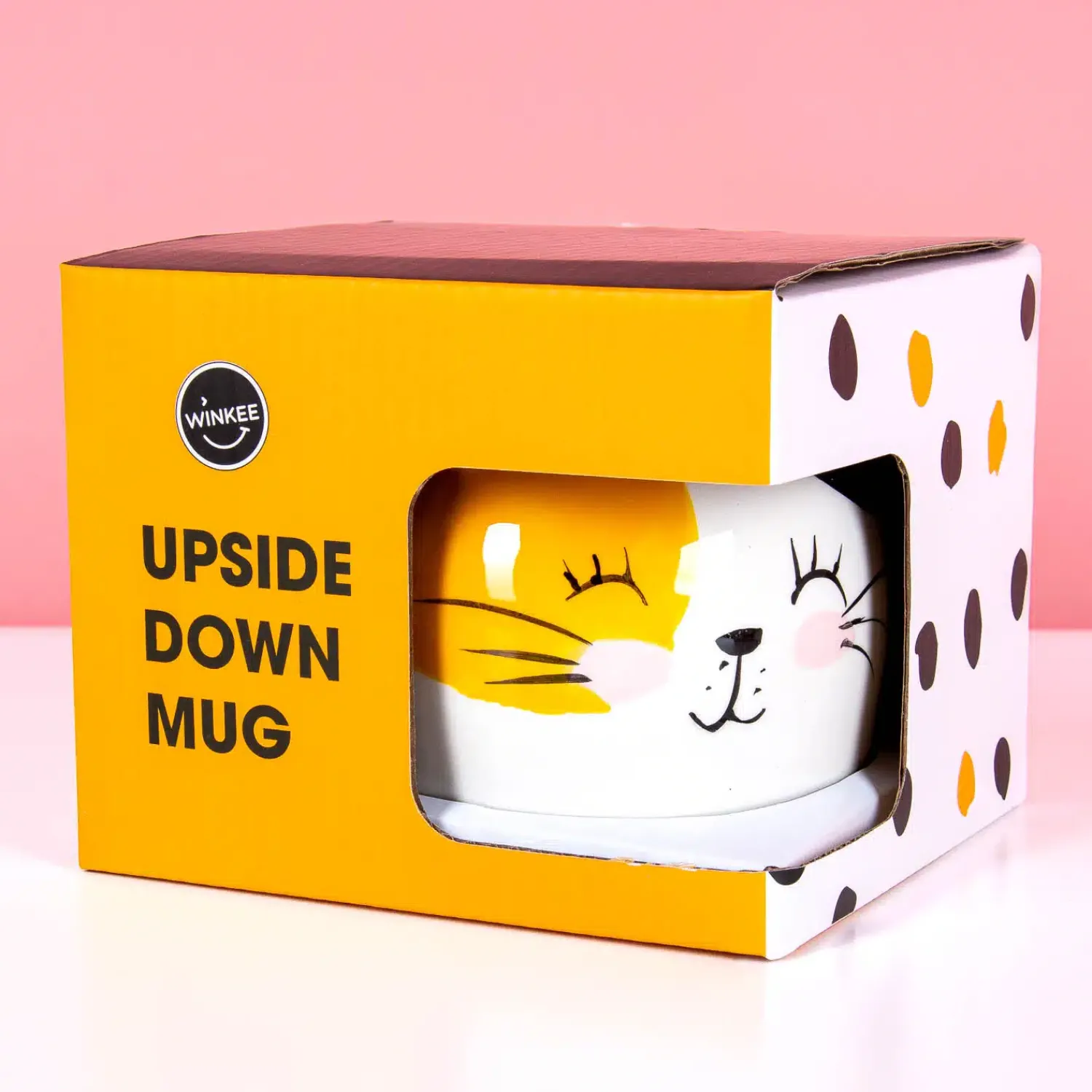 Waarom zou je een normale mok gebruiken, als je er ook eentje kunt hebben die op z’n kop staat? De Ondersteboven kat mok van Winkee is een kattenkop die op z’n oortjes staat wanneer je hem gebruikt. Met een lieve glimlach en gesloten oogjes, en leuke gekleurde vlekken. In de kast is het een schattig decoratiestuk, op tafel een koffiemok.