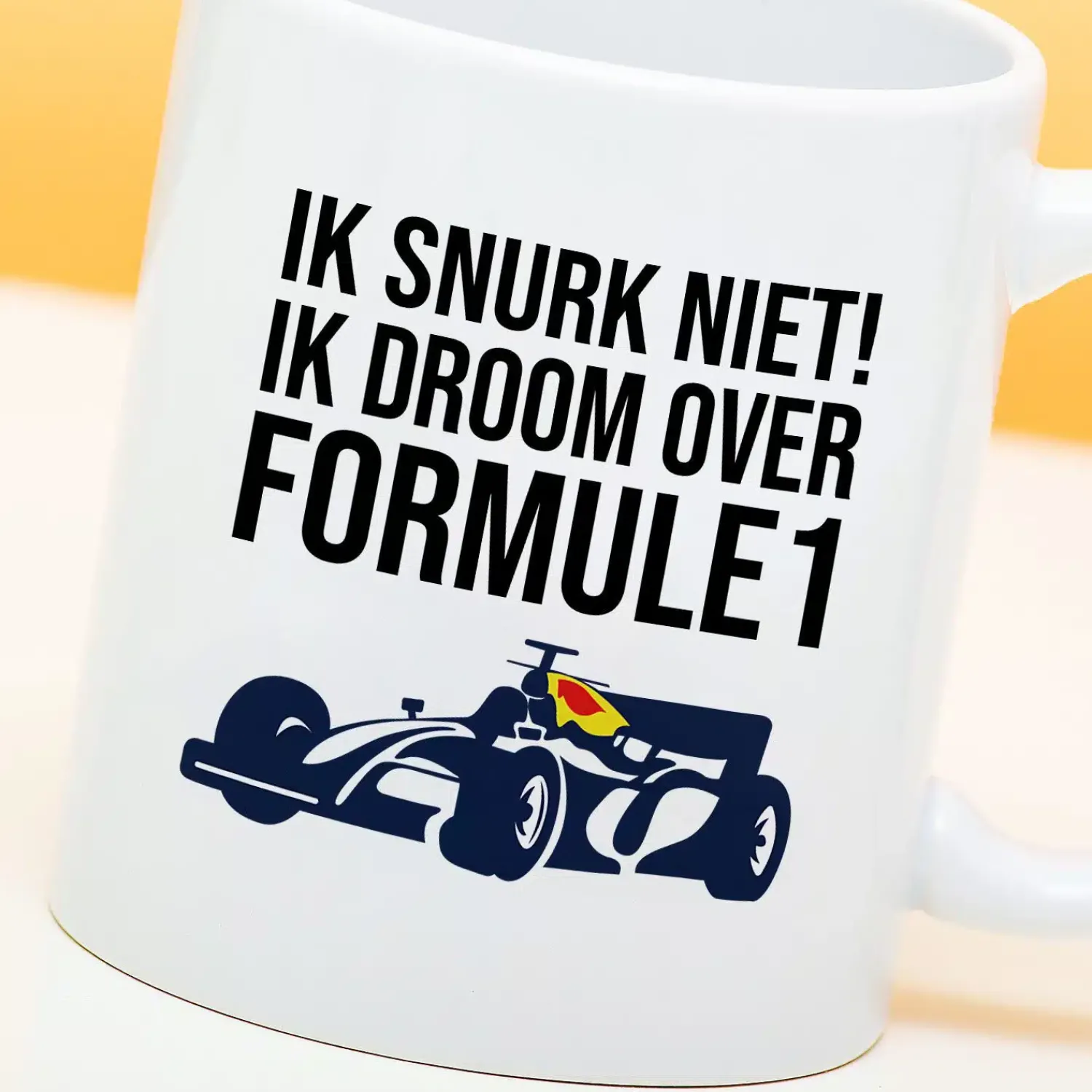 Dat jij in je slaap klinkt als een Formule 1 auto is volkomen logisch. Je snurkt niet, maar droomt dat je zelf een Grand Prix aan het rijden bent. Tenminste, dat is wat je als excuus zou kunnen gebruiken als je partner zegt dat je weer lag te snurken vannacht. Of je gebruikt gewoon de Mok Ik droom over Formule 1. Op deze grappige beker staat een Formule 1 auto en de tekst: Ik snurk niet! Ik droom over Formule 1.