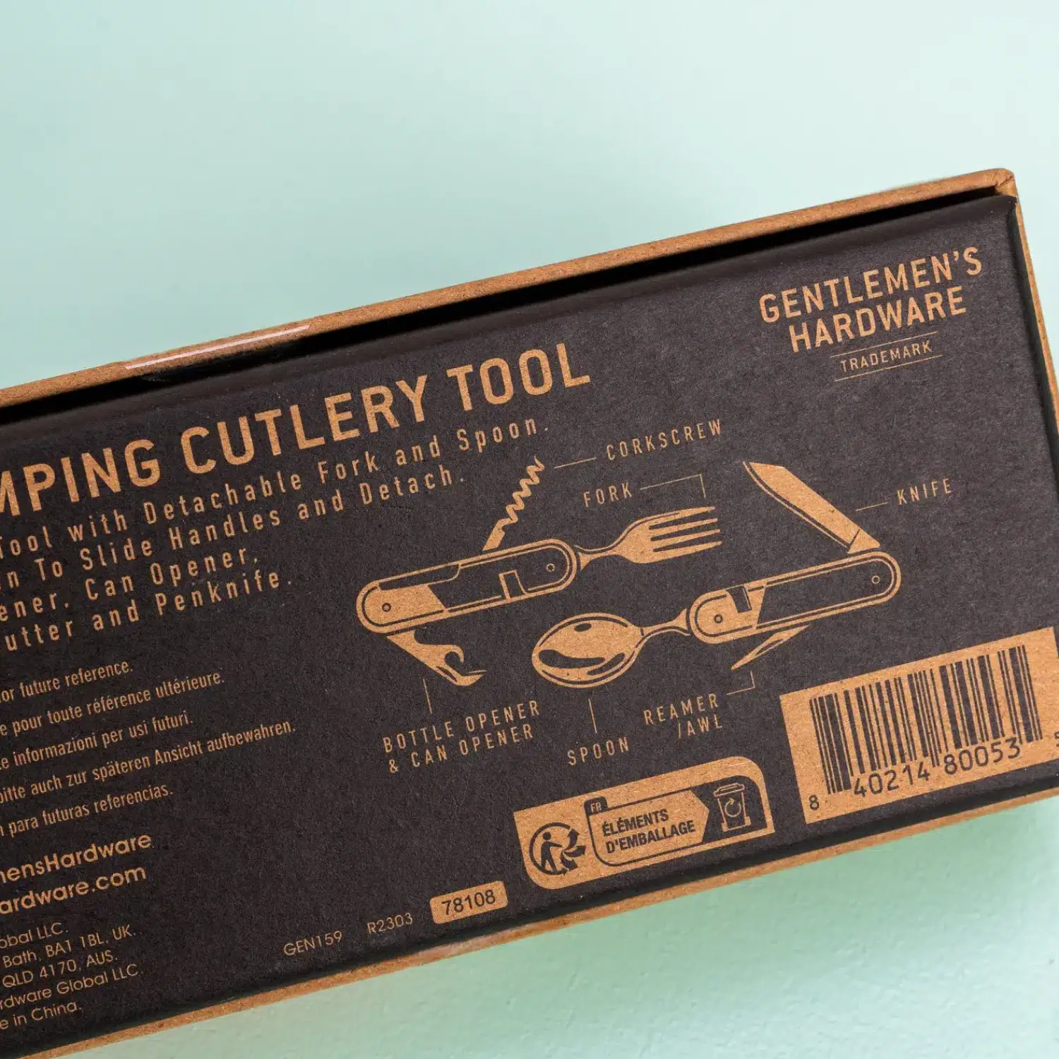 - Luxe multitool met luxe campingbestek (lepel, vork en mes)