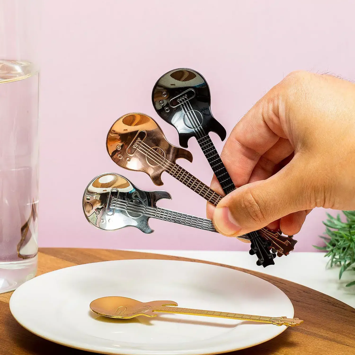 Of nu je zelf op het podium staat te rocken of gewoon rustig met een kop koffie geniet van rockmuziek: met de Gitaar theelepels (set van 4) van Winkee kan iedereen overweg. Deze originele theelepels zien eruit als een elektrische gitaar en zijn gemaakt van roestvrij staal. Ze hebben allemaal een ander kleurtje: zo kun je makkelijk onthouden welke koffiebeker van wie was.