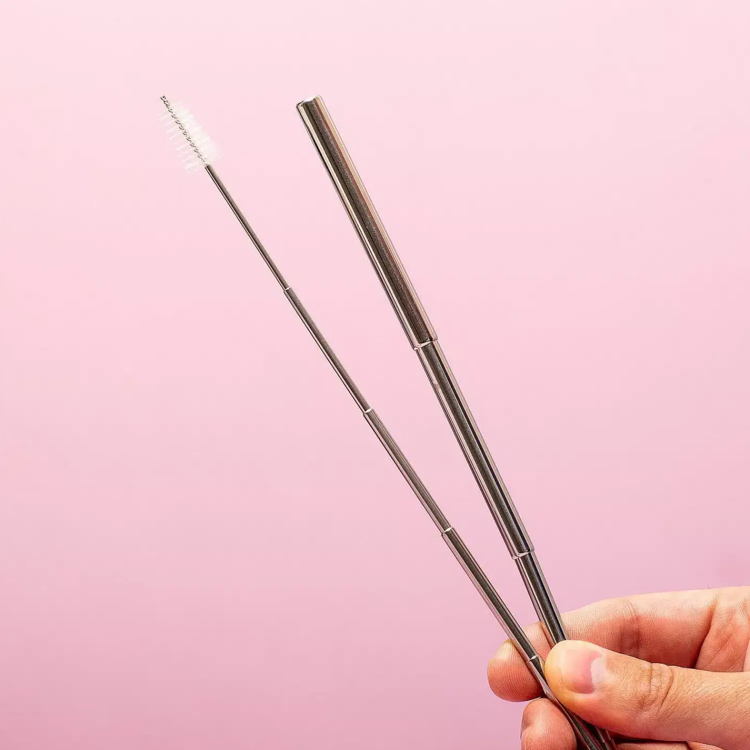 Dat plastic rietjes steeds meer uit het straatbeeld verdwijnen is een heel positieve ontwikkeling. Maar niet voor iedereen. Voor kinderen of mensen met een handicap is een rietje soms onmisbaar. En anderen vinden het gewoon fijn om een rietje te gebruiken, omdat het zo feestelijk staat in een cocktail. Daarom komt Kikkerland met het Uitschuifbare rvs rietje in reisverpakking. Dit handige rietje is een milieuvriendelijk alternatief voor plastic rietjes. Het is inschuifbaar en zit in een reisetui, waardoor je het eenvoudig mee kan nemen onderweg. Naast het rietje zit er ook een telescopisch borsteltje in de verpakking, waarmee het rietje te reinigen is.