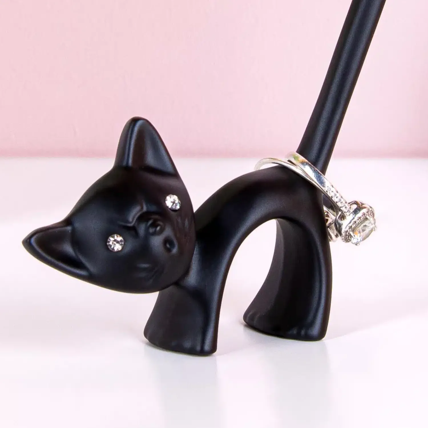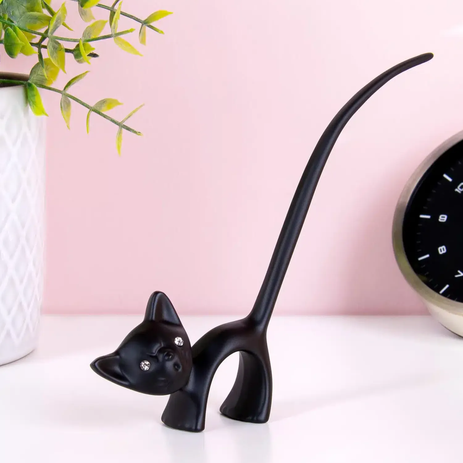 De Kat ringhouder van Invotis is een ideaal cadeau voor iedereen die haar ringen graag overzichtelijk opbergt. Deze zwarte kat brengt geen ongeluk, maar geluk: je hoeft nooit meer te zoeken naar je favoriete ringen. De lange staart van de kat is speciaal ontworpen om al je ringen voor je te bewaren. En hij staat nog leuk op je nachtkastje ook.