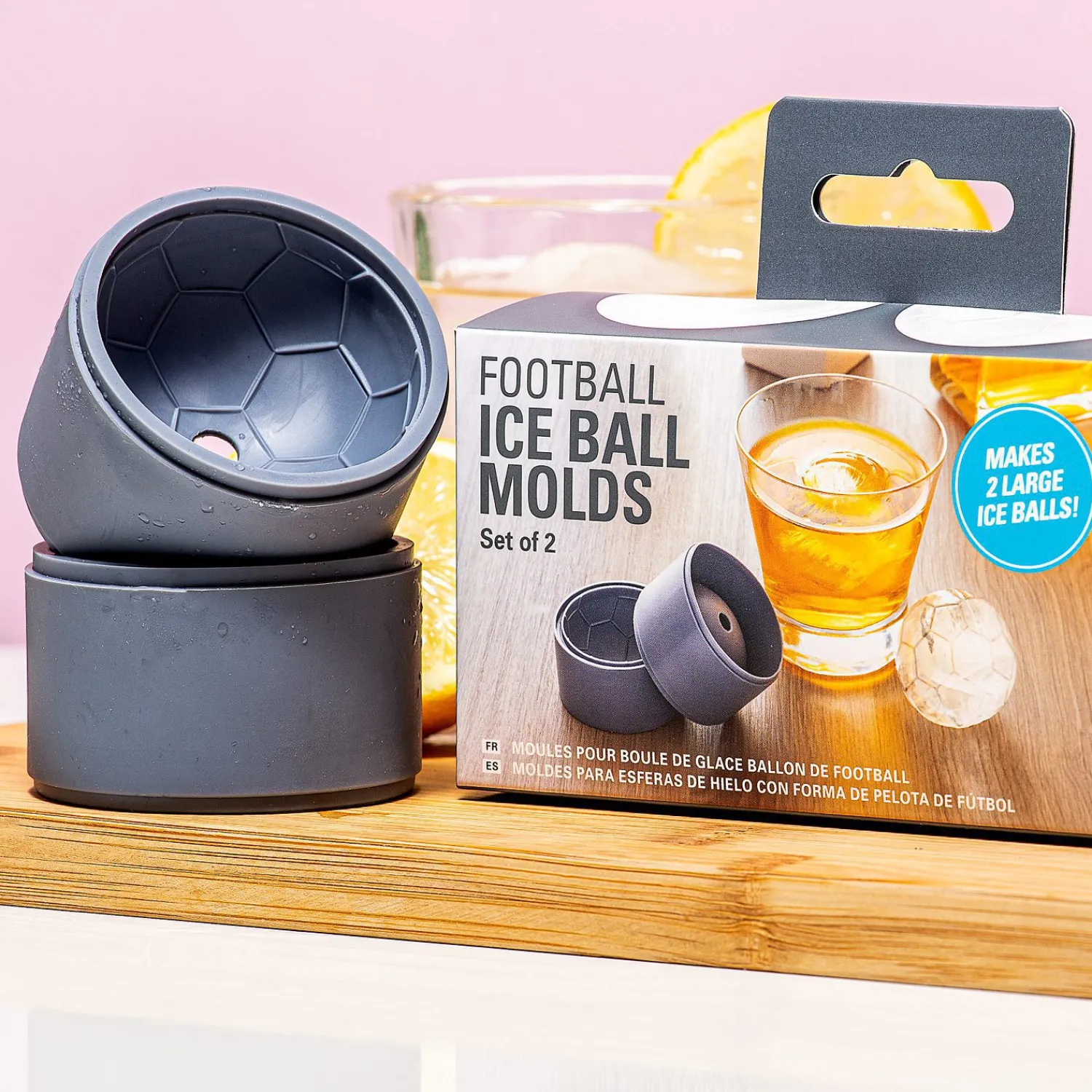 Of je nu zelf dagelijks op het sportveld staat of liever sportief met een drankje op de bank hangt: de IJsbal vorm (set van 2) van Kikkerland geeft je in elk geval het gevoel dat je sportief bezig bent. Met deze mallen maak je ijsballen die eruit zien als een golfbal of voetbal. De mal heeft twee delen: je vult hem aan de bovenkant en plaatst hem in de diepvries. Na een paar uur heb je een bevroren voetbal of golfbal die je drankje een sportieve touch geeft.