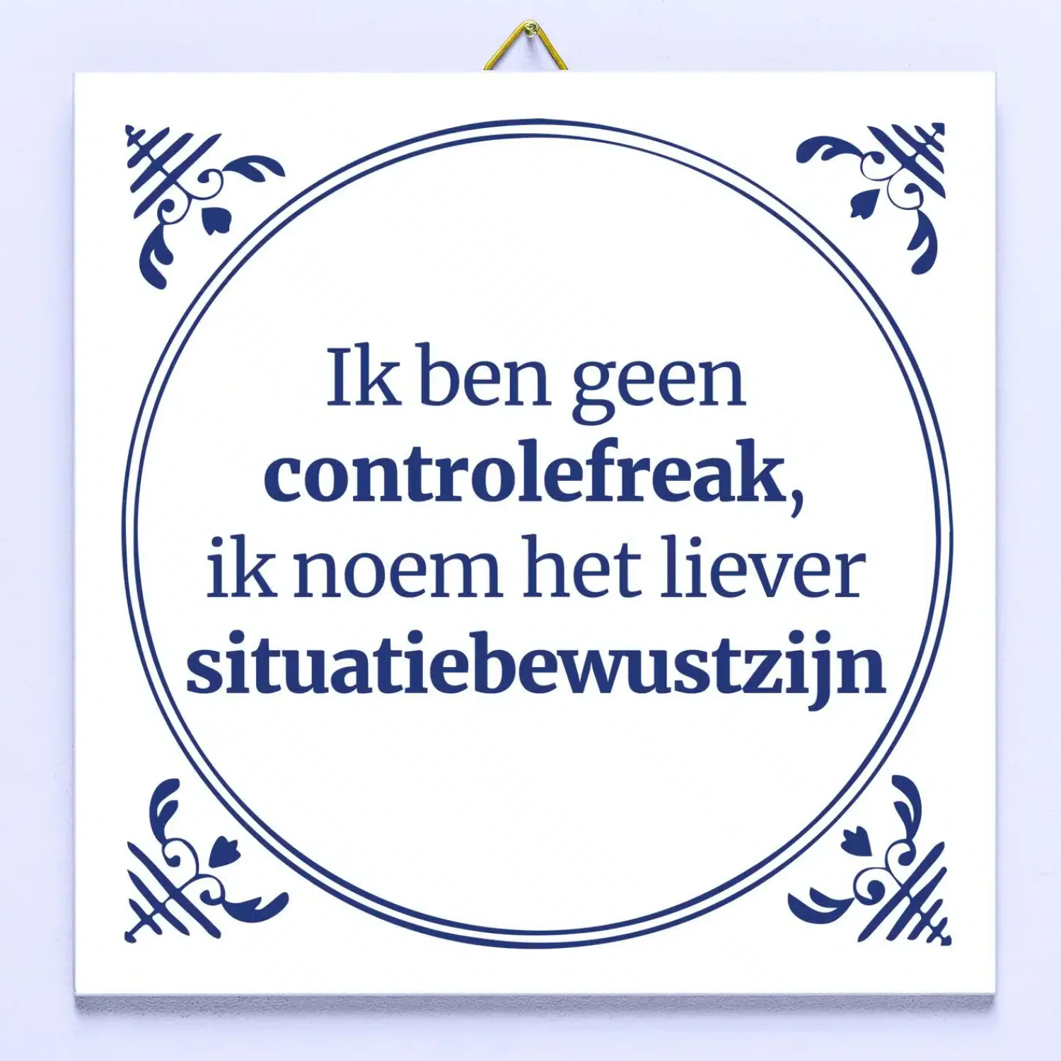 - Tegeltje met tekst: Ik ben geen controlefreak, ik noem het liever situatiebewustzijn