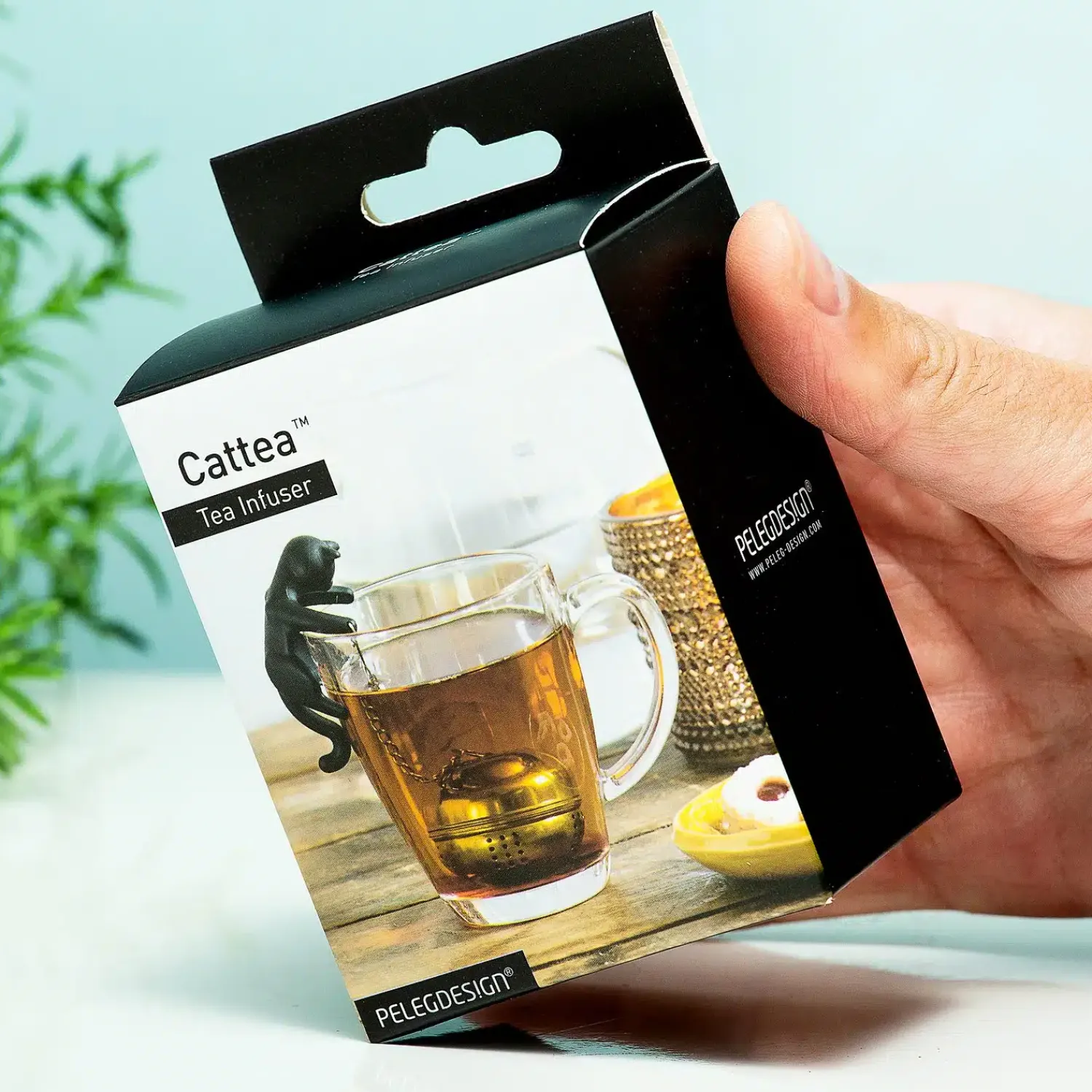 Gebruik jij het liefst losse thee om thee te zetten? Dan heb je een tea infuser of thee-ei nodig. En wij hebben een heel leuke voor je: de Cattea infuser van Peleg Design. Deze infuser heeft een thee-ei dat je vult met losse thee. Het hangt als een soort bolletje wol op de poot van de kat die je aan de rand van je theeglas hangt. Is de thee klaar, dan kun je de kat gebruiken als uitlekschaaltje voor het thee-ei.