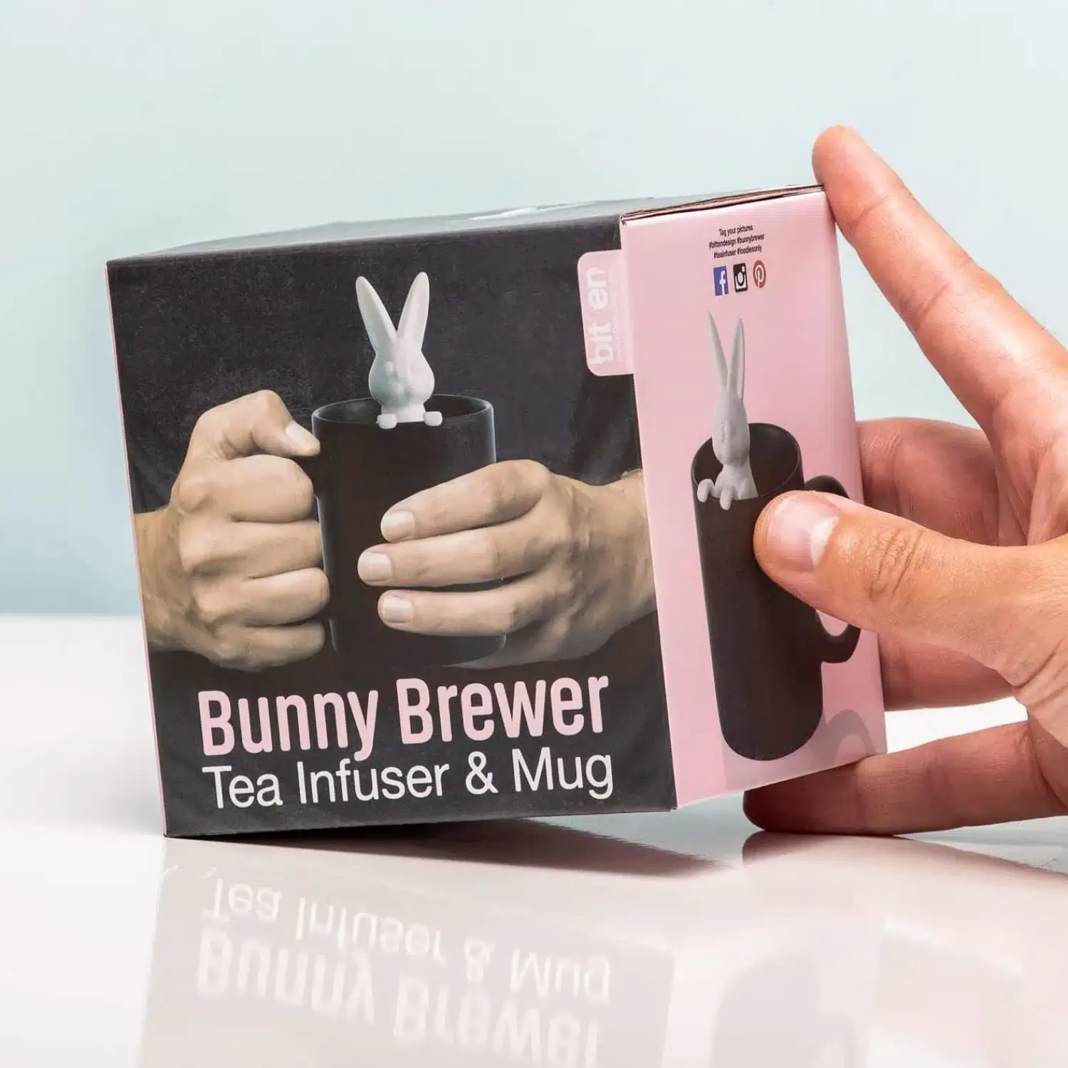 Konijnen uit je hoge hoed toveren, is iets wat je graag doet. Jij komt altijd met een verrassend idee aanzetten. Soms vragen mensen zich af hoe jij toch op zulke leuke, spontane ideeën komt. Heel simpel: die verzin jij tijdens het drinken van een kopje thee. En dan wel op een speciale manier gezet: met deze Konijn beker en tea infuser van Bitten. Je vult het witte konijn met je favoriete smaak losse thee om ‘m vervolgens over de rand van de zwarte mok te hangen. Wanneer de theebladeren het hete water op smaak hebben gebracht, tover jij het konijn uit de hoed, eh, mok.
