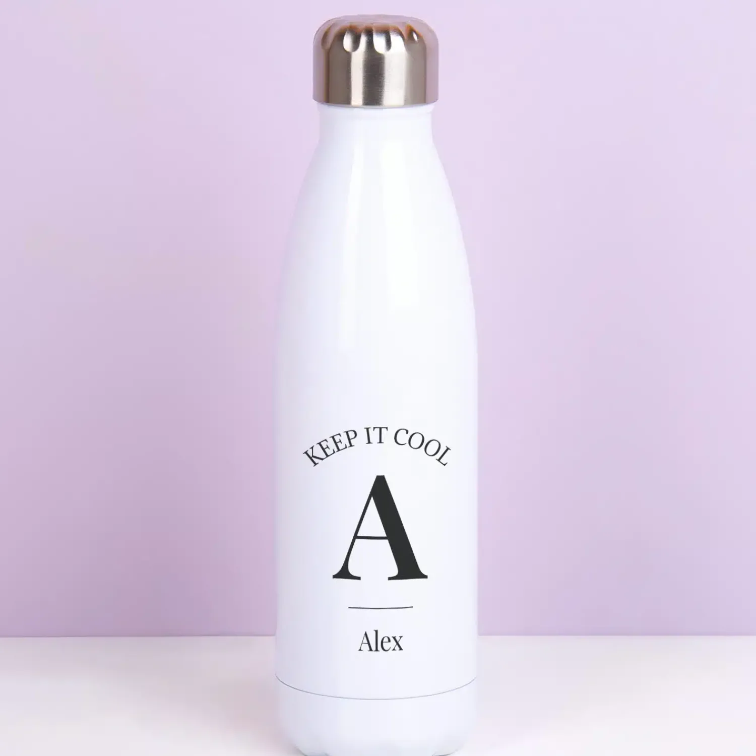 Het kan een uitdaging zijn: je hoofd koel houden. Vervelende collega’s, een huisgenoot die het bloed onder je nagels vandaan haalt of gewoon omdat je in de sportschool staat. De Gepersonaliseerde thermosfles Keep It Cool helpt je om je hoofd koel te houden. Op de fles staat de tekst Keep it cool, met daaronder je voorletter en je naam. De fles houdt ondertussen je drankje ook koel gedurende 24 uur. En doe je er een warme drank in, dan blijft deze 12 uur lang warm.