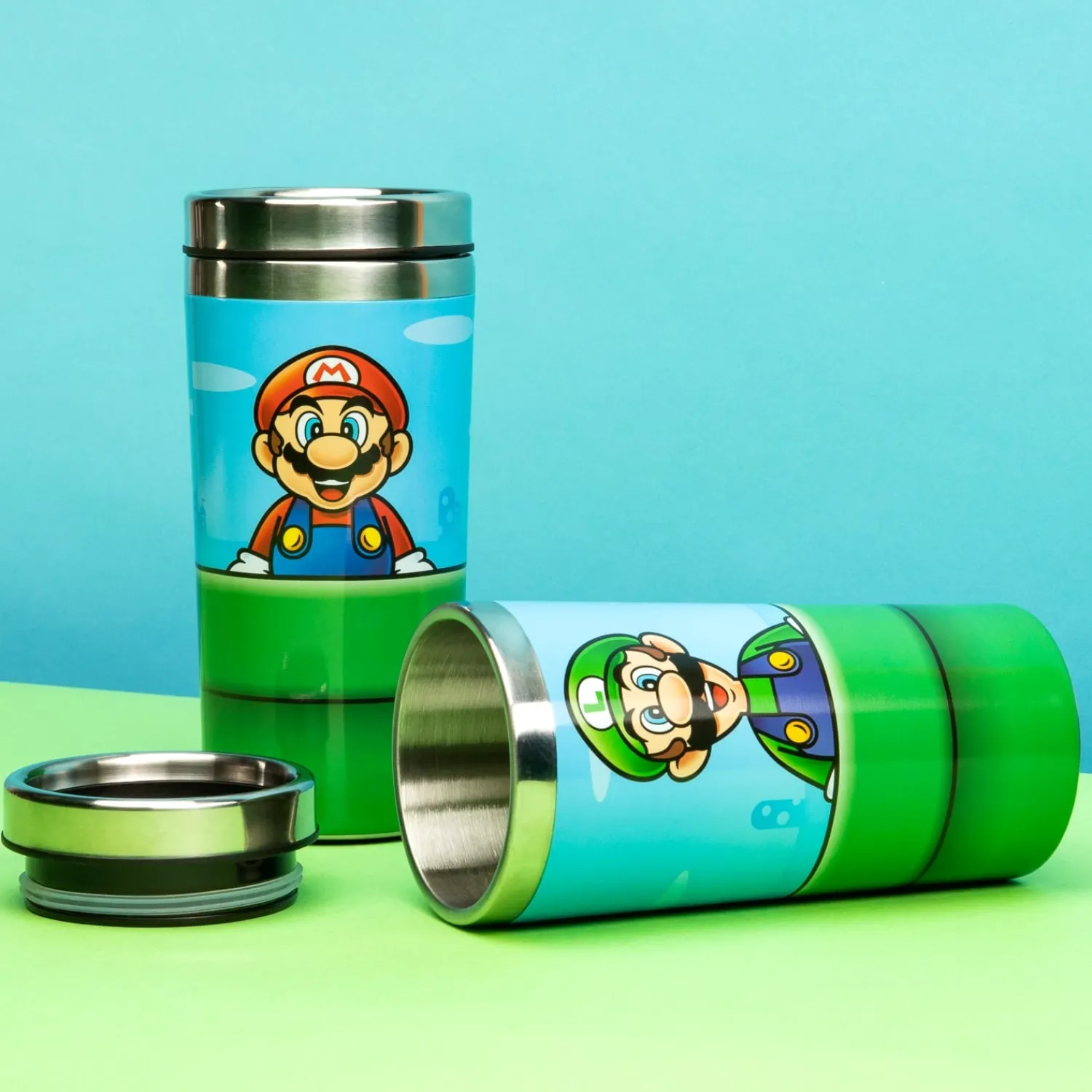 Waar je ook bent, jij hebt altijd warme thee of koffie bij je. Hoe? Simpel: met de Super Mario Warp Pipe thermosbeker natuurlijk! In deze gelicentieerde Nintendo-beker blijft je koffie heerlijk lang warm. Dat komt omdat ‘ie van dubbelwandig roestvrij staal is gemaakt. De koffiebeker is voorzien van de bekende groene Warp Pipe, die spelers van het spel ongetwijfeld herkennen. De trein, bus of in de auto: waar neem jij je Super Mario koffiebeker mee naartoe?