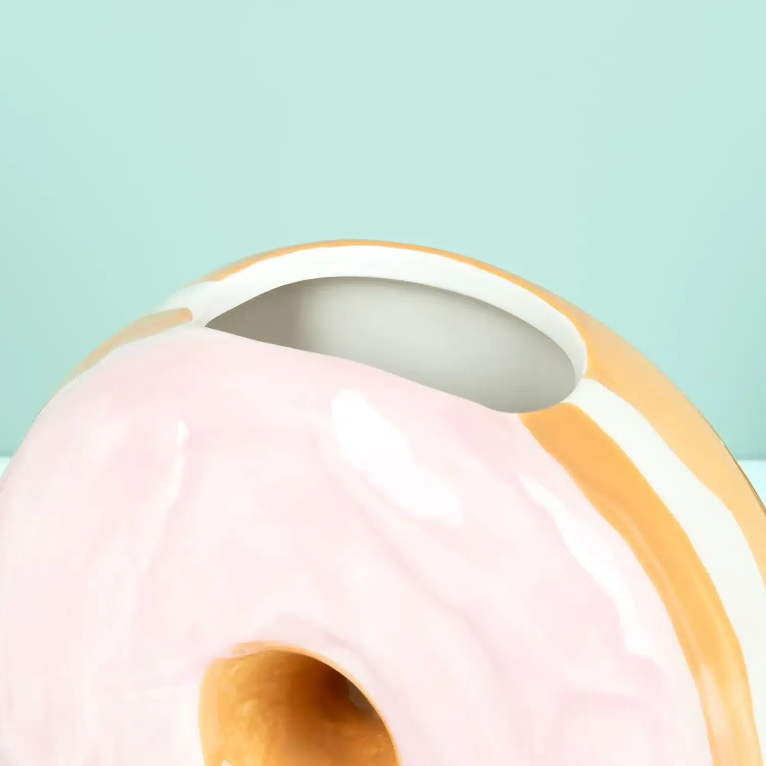- Vaas die eruit ziet als een donut met roze glazuur