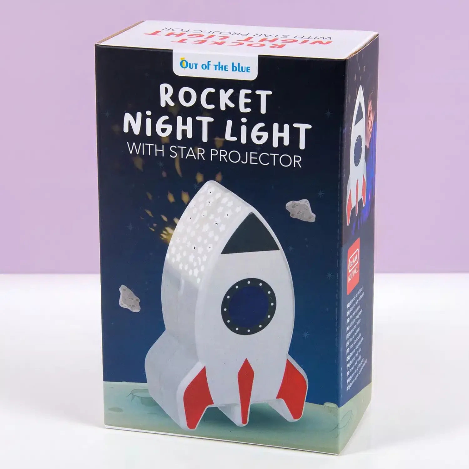 De kinderkamer is niet compleet zonder een leuk lampje, dat je ‘s avonds kunt gebruiken als nachtlampje. De Raket projector is zo’n lampje. Het ziet eruit als een stoere raket, maar is ook heel geschikt voor als je kindje liever niet gaat slapen in het donker. Aan de bovenkant van de lamp zitten open sterretjes en maantjes, waardoor het licht naar buiten schijnt. Op die manier krijg je een sterrenhemel op je plafond of muur.