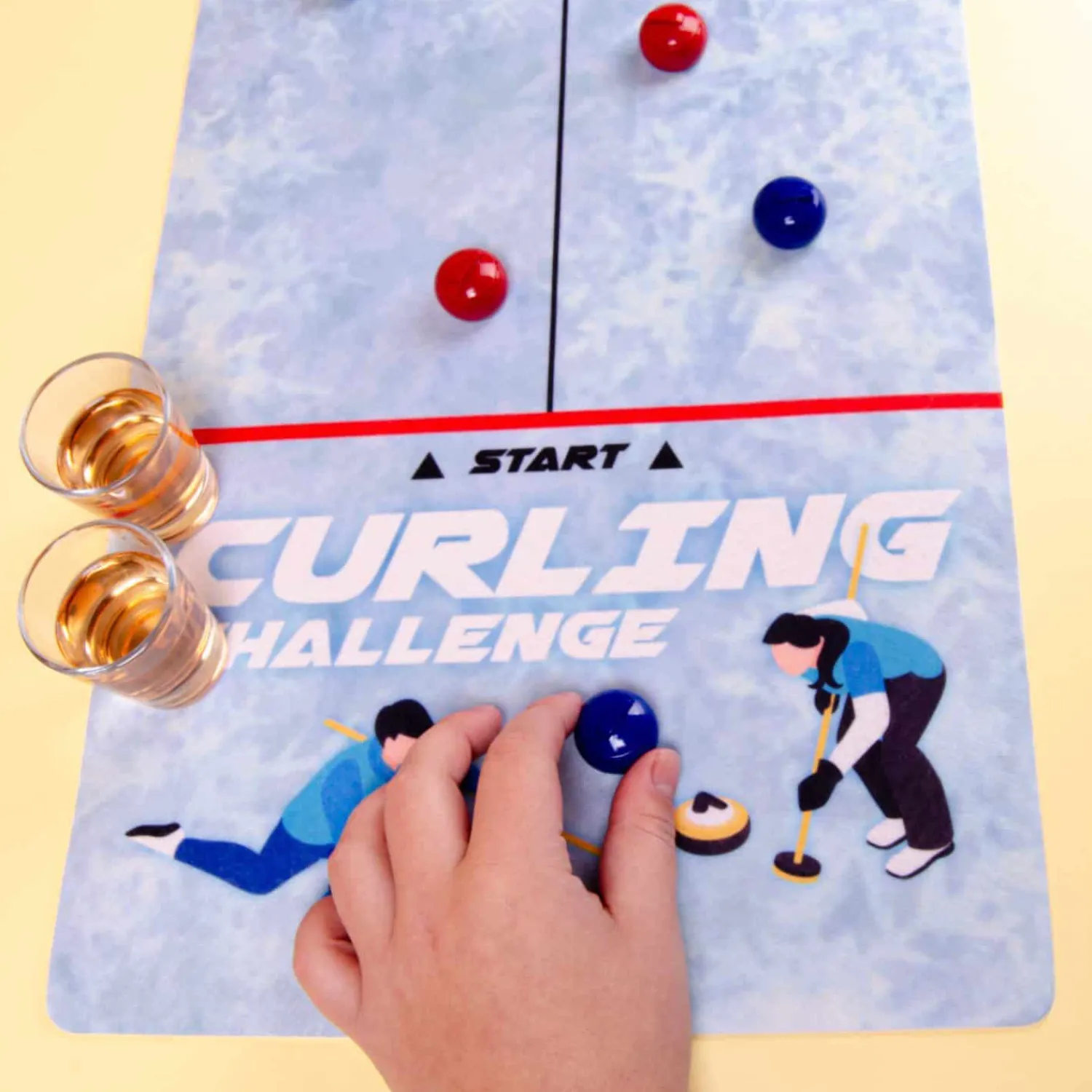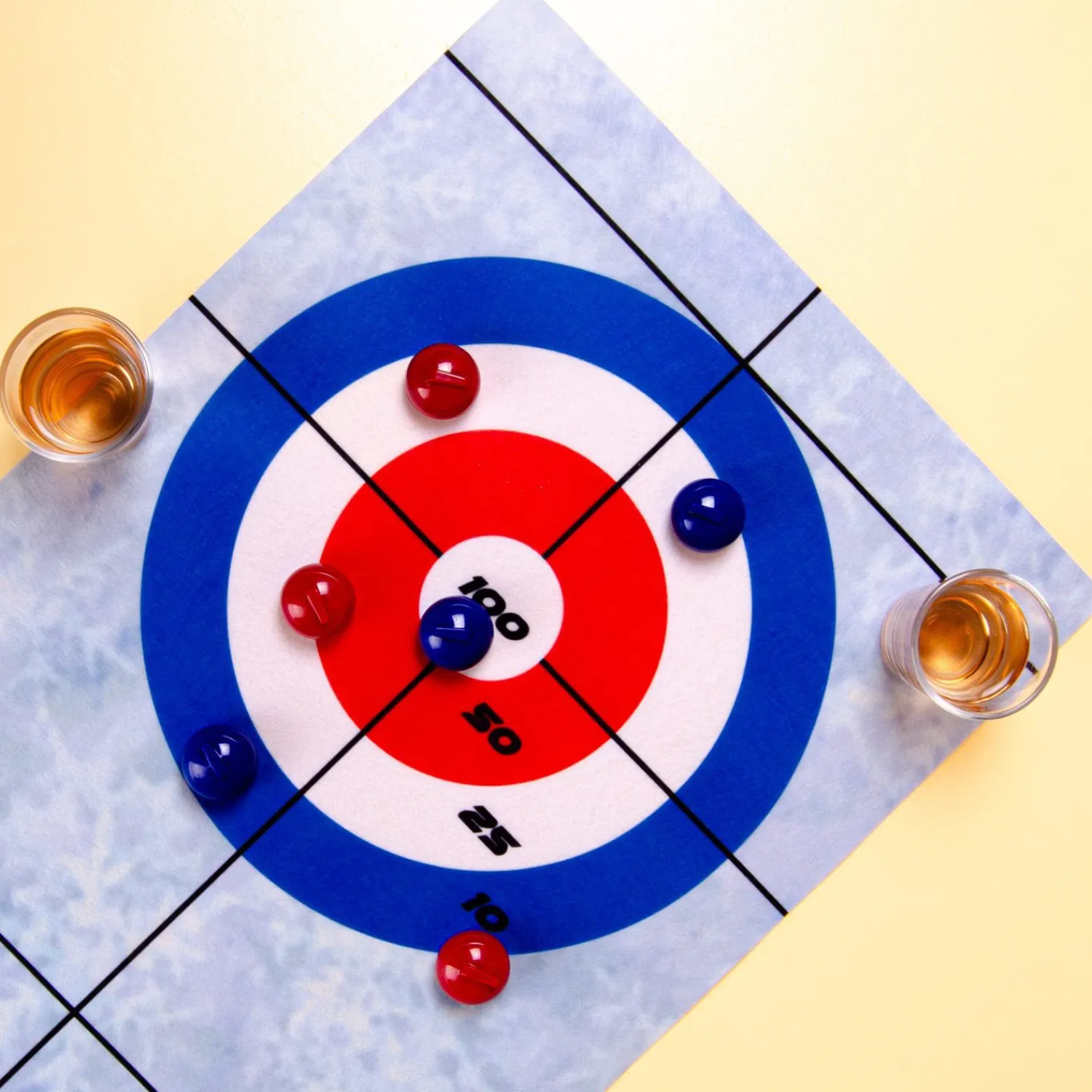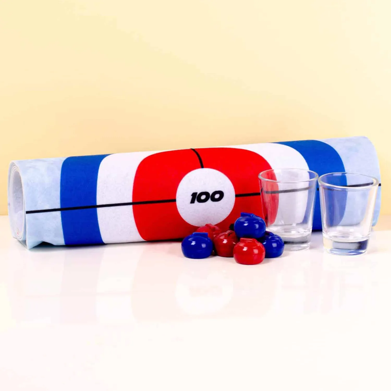 - Inhoud: speelmat, zes ballen en twee shotglaasjes
