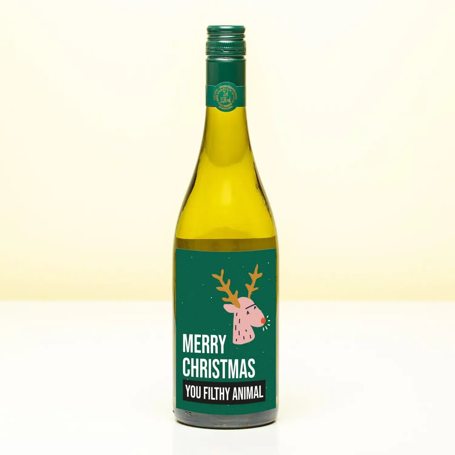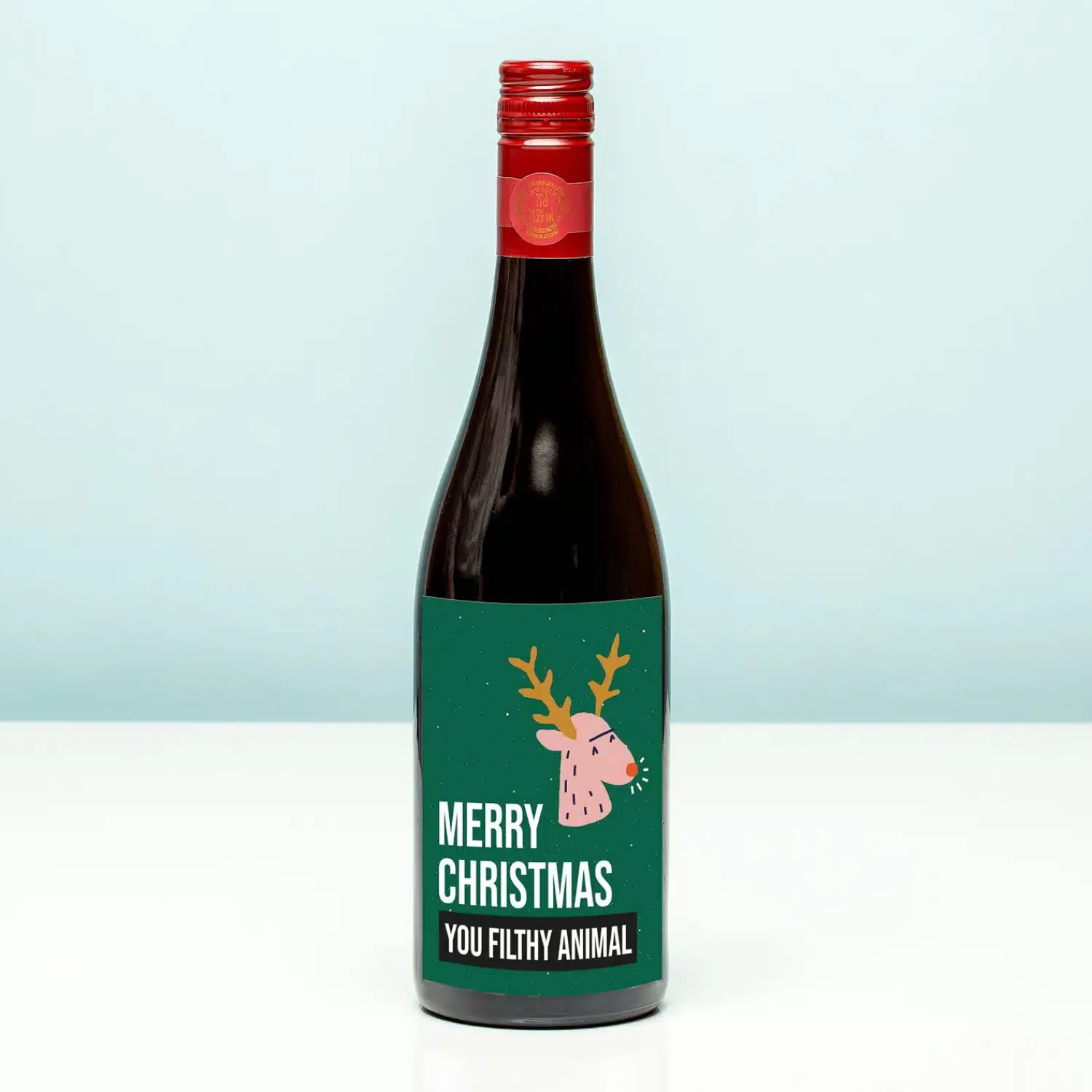Wijnfles met tekst Merry Christmas You Filthy Animal