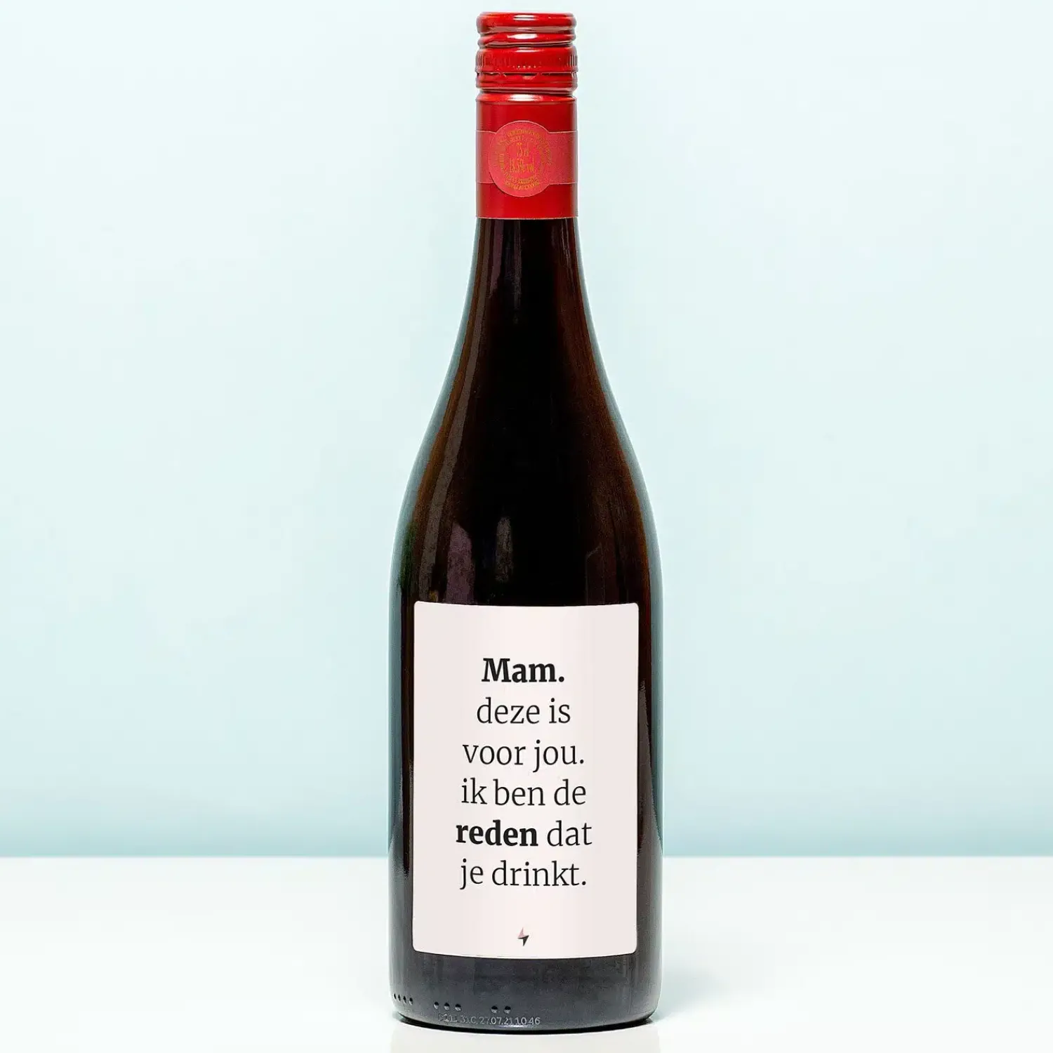 Even lekker ontspannen met een wijntje, na het werken, koken, puinruimen en wassen. Klinkt dat als jouw moeder? Geef haar dan de Wijnfles De reden dat ze drinkt cadeau. Op deze wijnfles zit een speciaal etiket, met de tekst: Mam, deze is voor jou. Ik ben de reden dat je drinkt.
