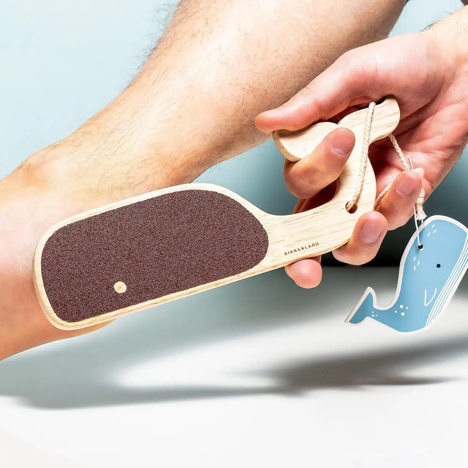 Lig je lekker tegen elkaar in bed, schuur jij opeens met je eeltige hakken een stuk huid van de benen van je geliefde. Over een domper gesproken. Met de Walvis voetvijl van Kikkerland schuur jij je eelt eenvoudig weg en worden je voeten weer zo zacht als babyvoetjes. Grappige voetvijl die zich als een vis in het water voelt in je badkamer.