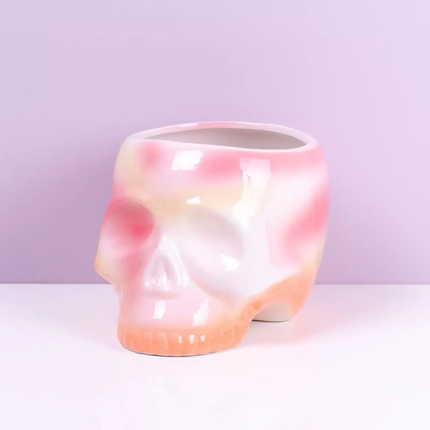 Zoek je een uniek woonaccessoire? Kies voor stoer én lief, met de Schedel bloempot van Fisura. Een stoere bloempot die lijkt op een schedel, maar door de ombre kleuren in roze, oranje en geel er toch heel lieflijk uitziet. Het is aan jou de keus of je deze schedel een prikkelig kapsel geeft, zoals een cactus, of juist zijn haar laat groeien door er een hangplantje in te doen.