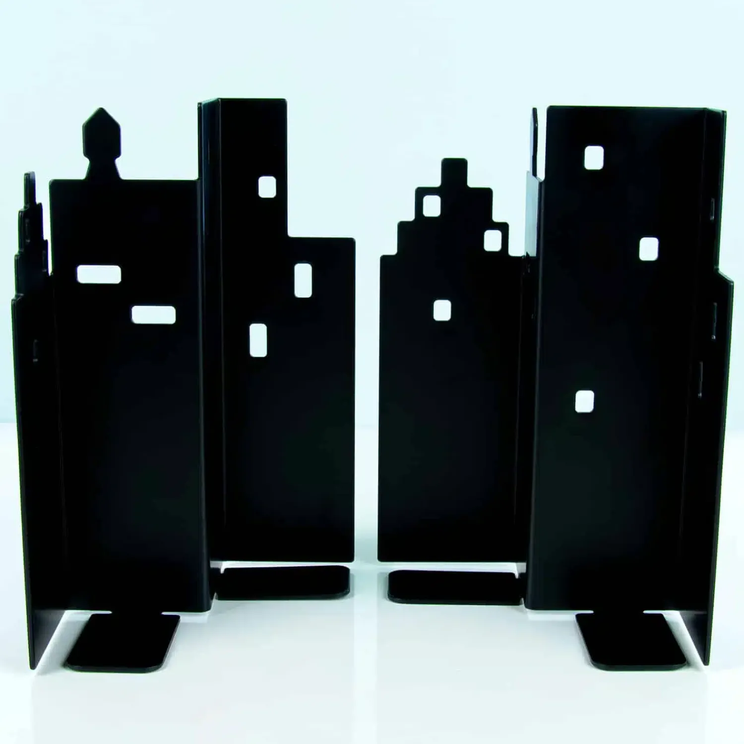 - Set van twee boekensteunen die eruit zien als de skyline van een stad