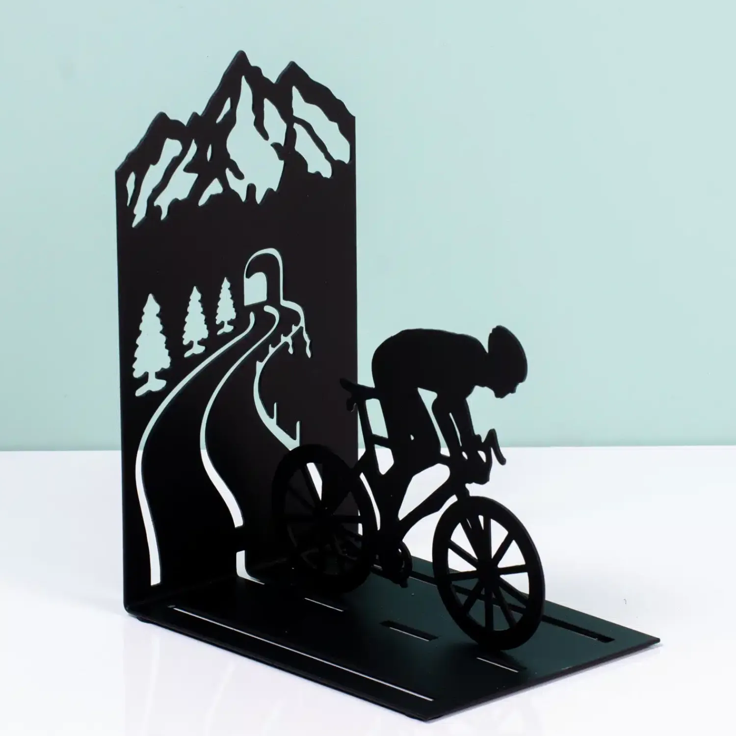 Zit jij elke zomer voor de tv om de tour te kijken? Dan past de Wielren boekensteun van Balvi vast ook goed in je huis. Deze boekensteun is speciaal ontworpen voor wielerfans. De steun heeft een klimmende wielrenner en op de steun zelf zie je een berg en een bergweggetje. Een echte eyecatcher in de boekenkast of op een plank.