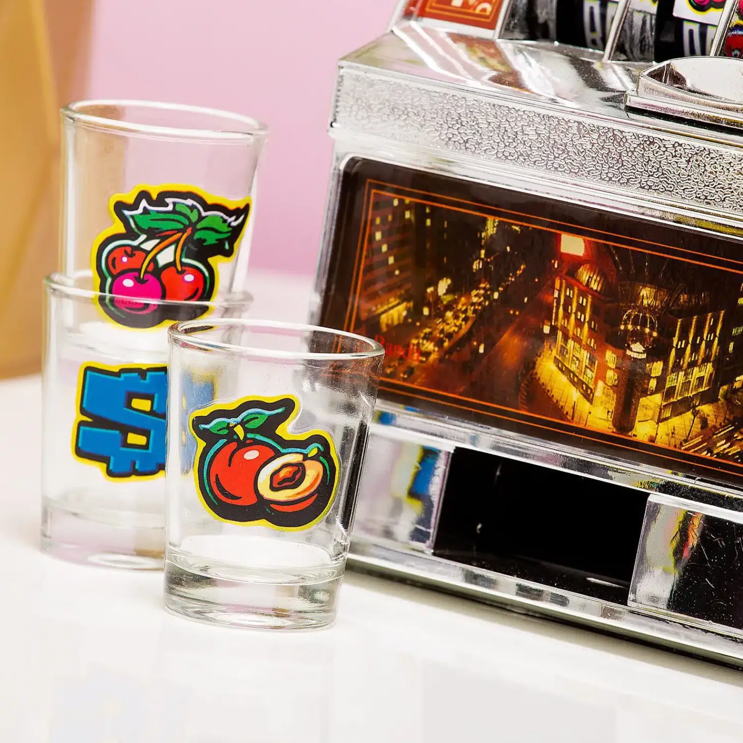 Ben je met het goede been uit bed gestapt en denk je dat het geluk aan jouw zijde is vandaag? Dan is het tijd om het Gokautomaat drankspel met shotglaasjes van Out of the Blue erbij te pakken. Dit grappige drankspel bevat een gokautomaat en vijf drankglaasjes. Verder heb je alleen je vier beste vrienden nodig en natuurlijk een fles drank.