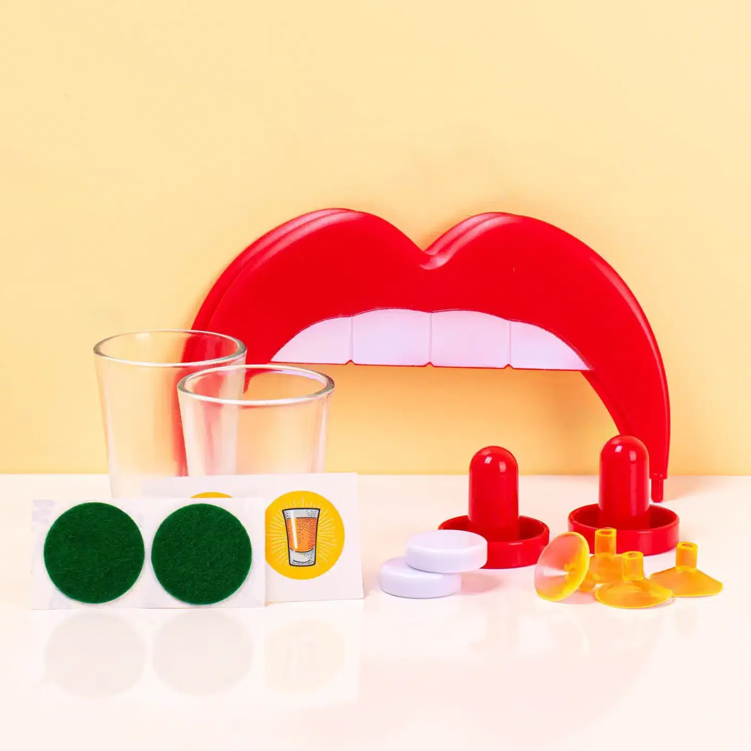 Een avondje hockeyen met het comfort van thuis? Een eitje, met het Hockey shots drankspel van Out of the Blue! Dit grappige drankspel speel je gewoon op de eettafel of je keukeneiland. Het spelletje komt met twee goals in de vorm van een mond, die je vastmaakt met de zuignappen. Met de putter in je hand probeer je een puck door de goal te schuiven. Op de ene puck staat een glas bier, op de ander een glas sterke drank. Zo wordt er bepaald wie wat moet drinken. Natuurlijk krijg je ook twee shotglaasjes bij het spel.