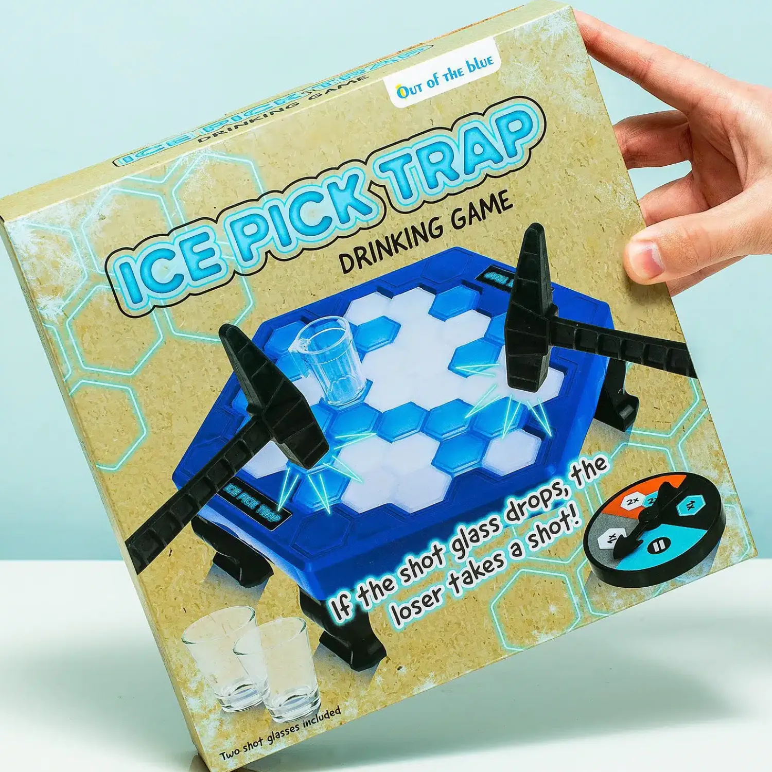 Een spelletje spelen waarbij de verliezer moet drinken is altijd leuk. Het Ice Pick Trap drankspel van Out of the Blue geeft je het gevoel dat je op een missie op de Noordpool bent. Bij dit spel is het de bedoeling dat je op het ‘ijs’ slaat met je hamer. Valt het speciale bekertje, dan moet je drinken. Het draairad bepaalt hoe vaak je moet slaan.