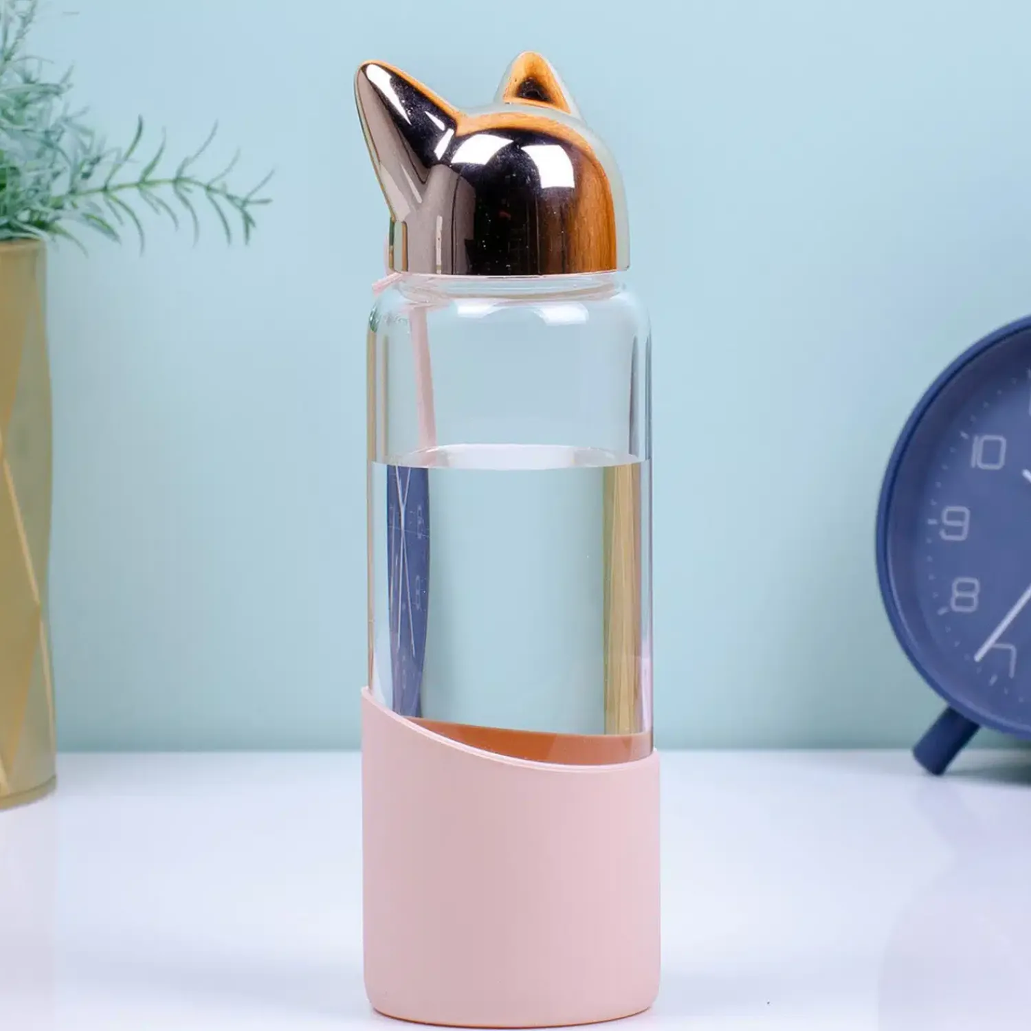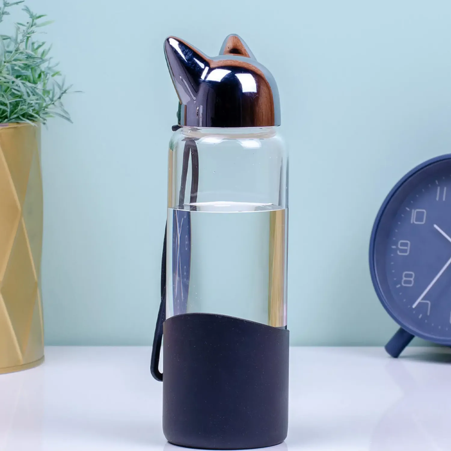 Ga voor duurzaam en neem je flesje water gewoon mee van huis. Zo hoef je onderweg niet steeds water te kopen en verbruik je minder plastic. De Kat waterfles van Balvi is bovendien veel leuker dan een plastic fles. Deze waterfles, gemaakt van stevig boriumsilicaat glas, heeft een dop met kattenoortjes. Aan de onderkant zit een deel van siliconen, dat ervoor zorgt dat de fles niet uit je handen glipt. En met het siliconen hengsel neem je de fles makkelijk mee. Leverbaar in zwart of roze met goud.